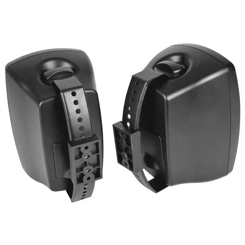 High quality IP44 weather resistant speakers with an extended low frequency driver and dome tweeter housed in an efficiently designed moulded cabinet. Each speaker is supplied with a laterally adjustable wall mounting bracket that can also set to various tilt positions for efficient directivity. Designed for indoor or outdoor background music and public address applications.