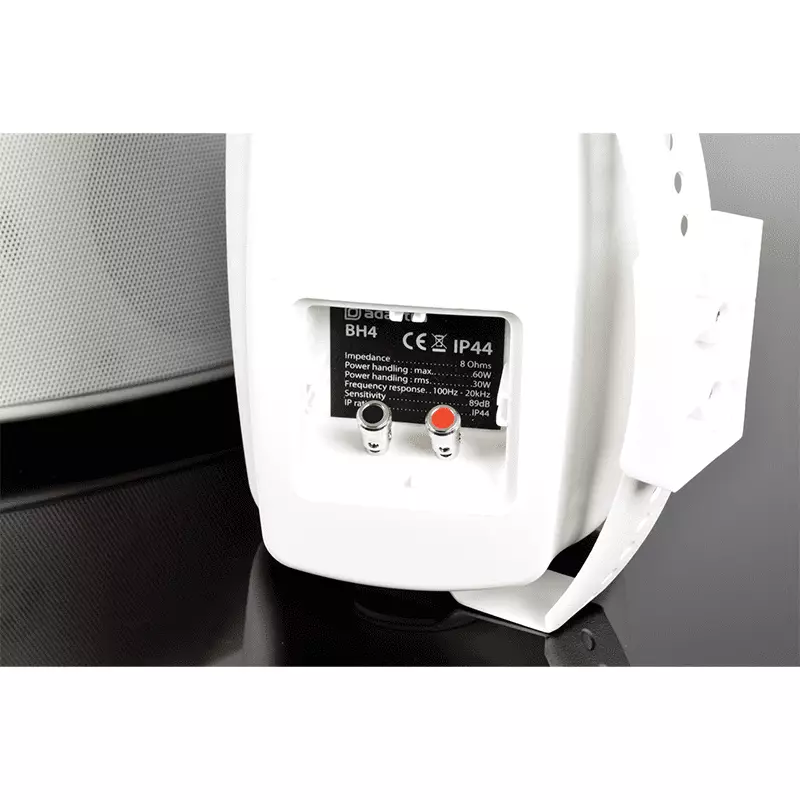 High quality IP44 weather resistant speakers with an extended low frequency driver and dome tweeter housed in an efficiently designed moulded cabinet. Each speaker is supplied with a laterally adjustable wall mounting bracket that can also set to various tilt positions for efficient directivity. Designed for indoor or outdoor background music and public address applications.