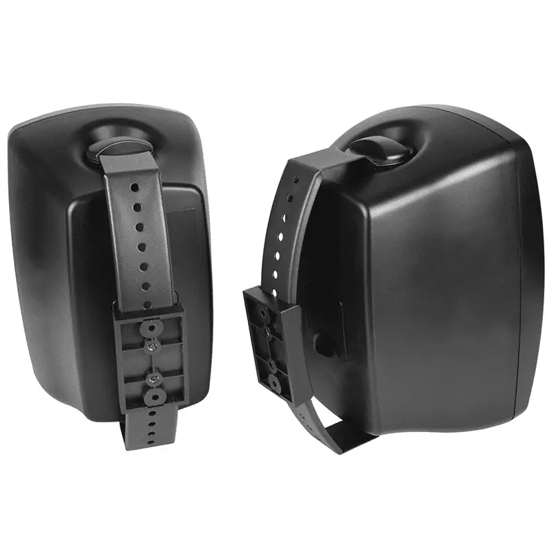 High quality IP44 weather resistant speakers with an extended low frequency driver and dome tweeter housed in an efficiently designed moulded cabinet. Each speaker is supplied with a laterally adjustable wall mounting bracket that can also set to various tilt positions for efficient directivity. Designed for indoor or outdoor background music and public address applications.