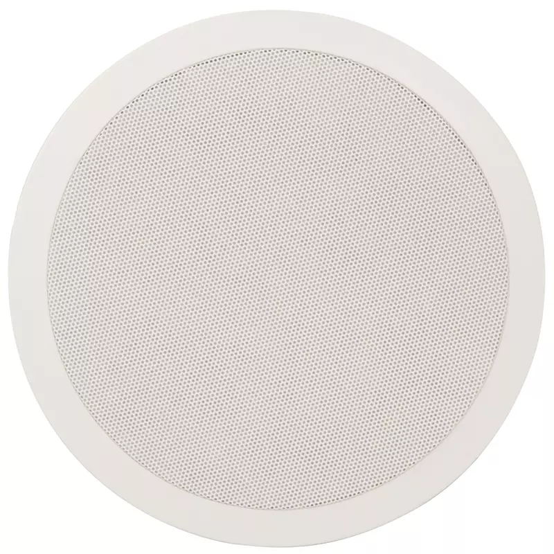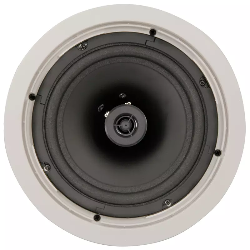 2-way quick fit ceiling speakers with PP mica bass driver and directional dome tweeter giving an excellent frequency response, all housed in a white polymer frame with metal grille.