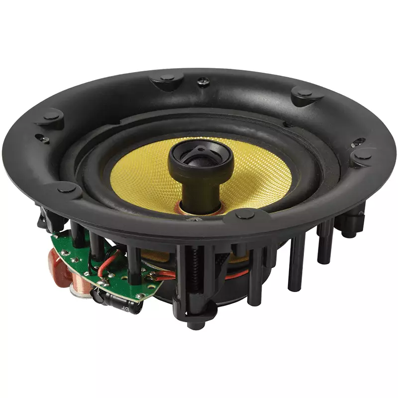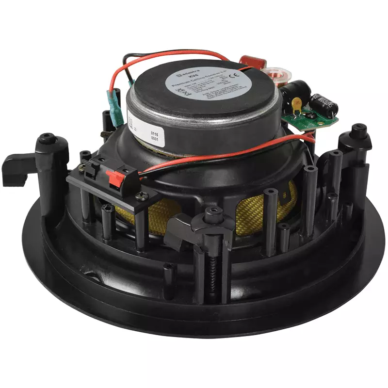 Premium quality ABS 2-way ceiling speakers with magnetic frameless grille for high quality music reproduction in a sleek design. High energy glass-aramid main drivers are combined with a coaxial dome tweeter and coupled to a wave guide baffle for optimum sound dispersion. Each KV speaker is served by a full 2-way passive crossover network, providing an accurate and efficient frequency balance. Designed without compromise to deliver maximum power and quality from this class of ceiling speaker.