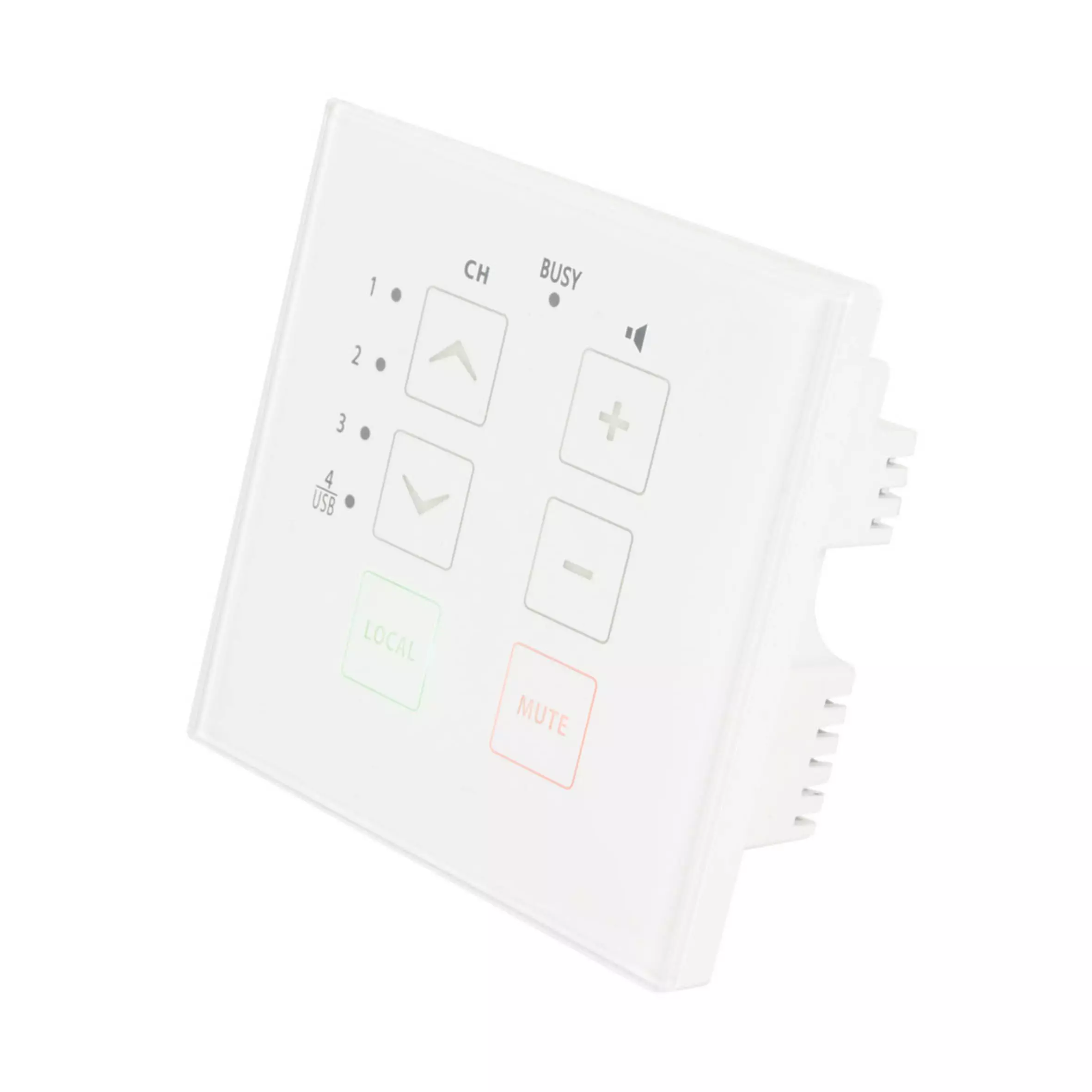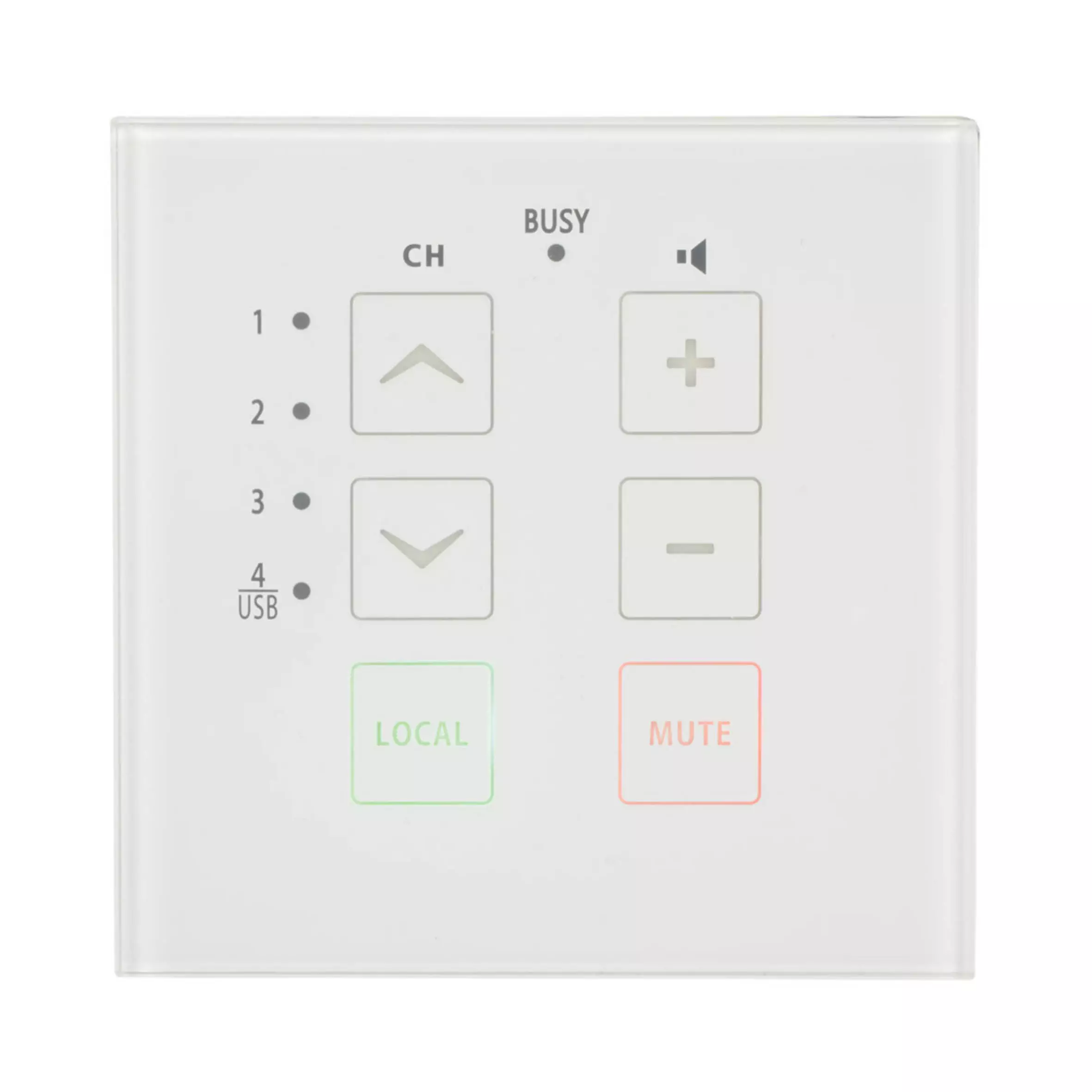 - Controls Sources: 1-4 (USB), Local, Mute, Level +/-