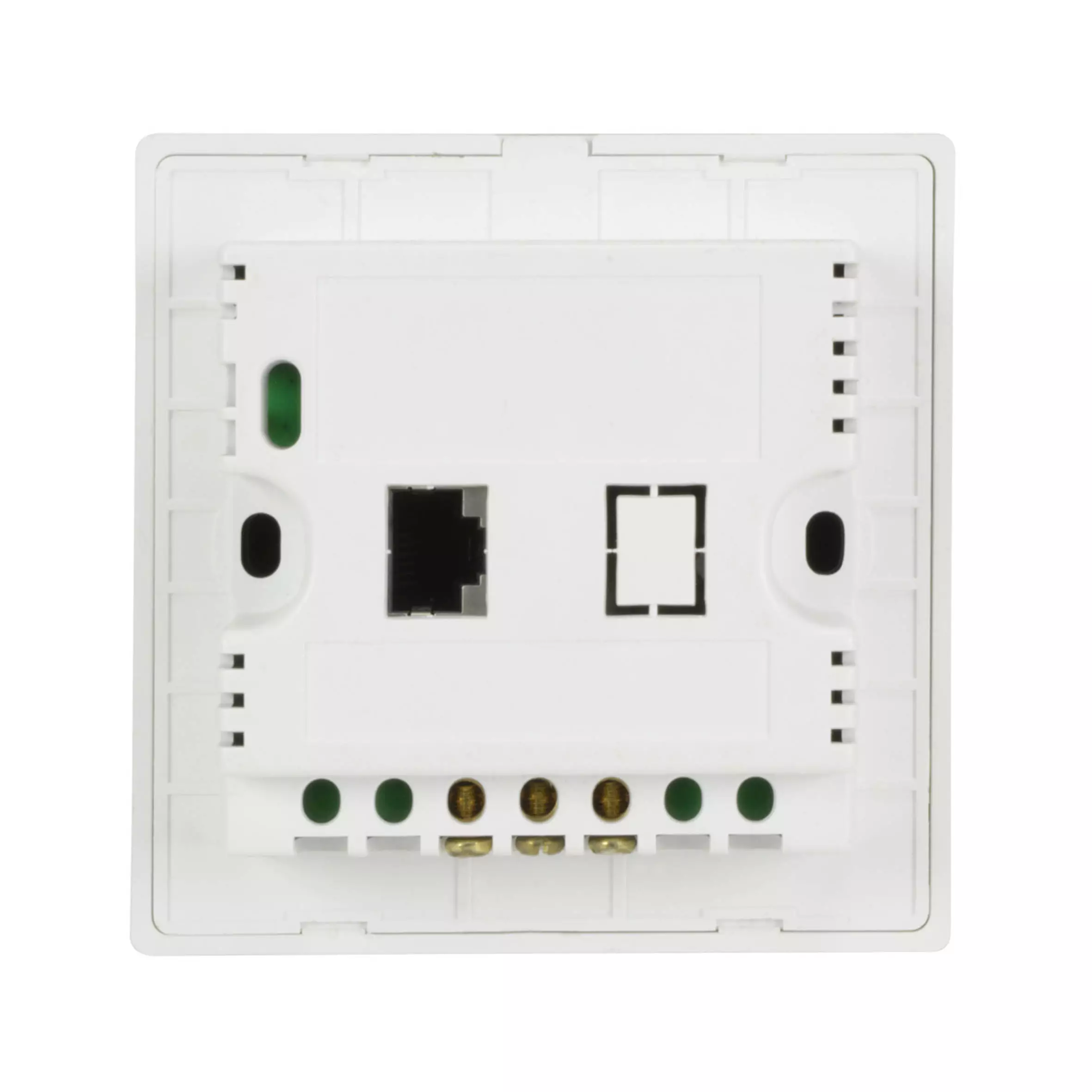 Remote control for the RZ45 audio matrix system built into a single gang 86 x 86mm wall plate. The illuminated acrylic touch-operated surface selects between 3 stereo audio sources or the inbuilt media player on the RZ45 and controls the output level to its zone. Connection by standard network cable carries signal and power to the TR86 panel up to 100m away from the RZ45 or signal up to 1km away with a separate 24Vdc power input. Additionally, a mono line level signal can be wired internally to the panel via screw terminals to provide an independent local audio source. Up to 5 TR86 remote panels may be used with a single RZ45 unit controlling up to 5 independent zones.