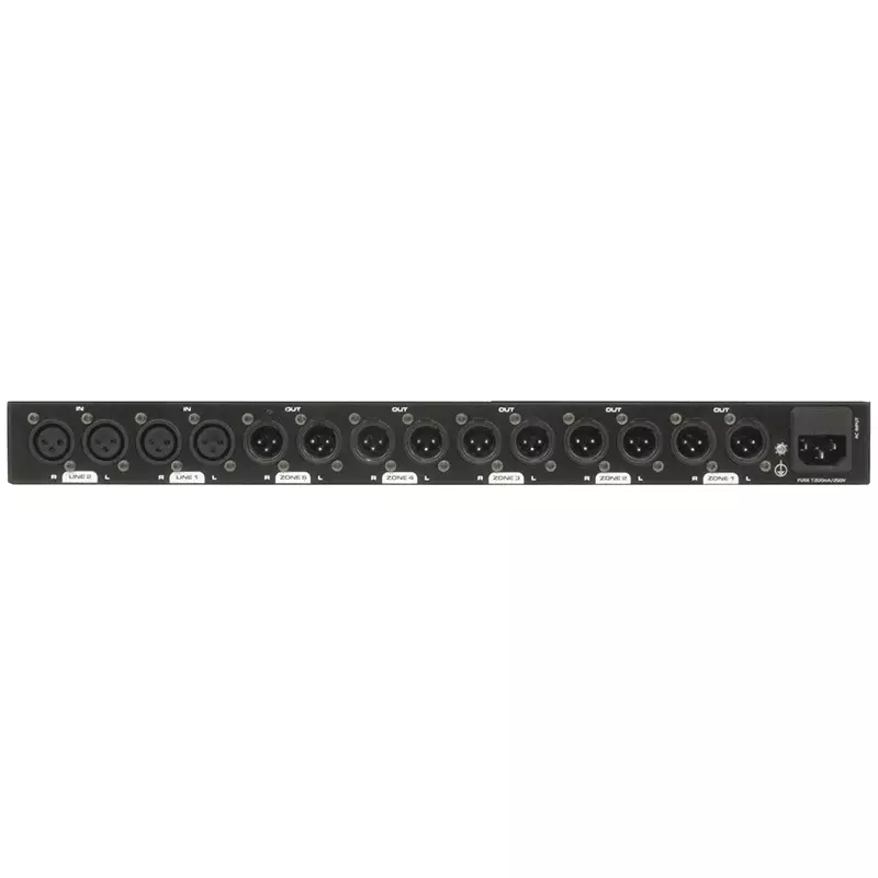 - OutputsZone 1 to 5 L+R, balanced XLRM
