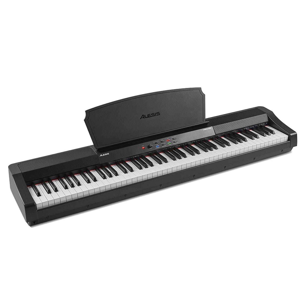 Bring home an authentic piano-playing experience with the Alesis Prestige, a full-featured digital piano with graded hammer-action keys and 16 incredibly realistic built-in sounds. This is the perfect substitute to owning a full-size acoustic piano, with premium multi-sampled voices, 128 max polyphony, and a custom-voiced 50W micro-array speaker system that sounds full and brilliant regardless of room position and surface placement . The Prestige’s sturdy design is substantial yet compact and lightweight so you can play, store, or bring it with you anywhere you’d like. Full of features for beginners and professionals alike, the Prestige excels in any situation.