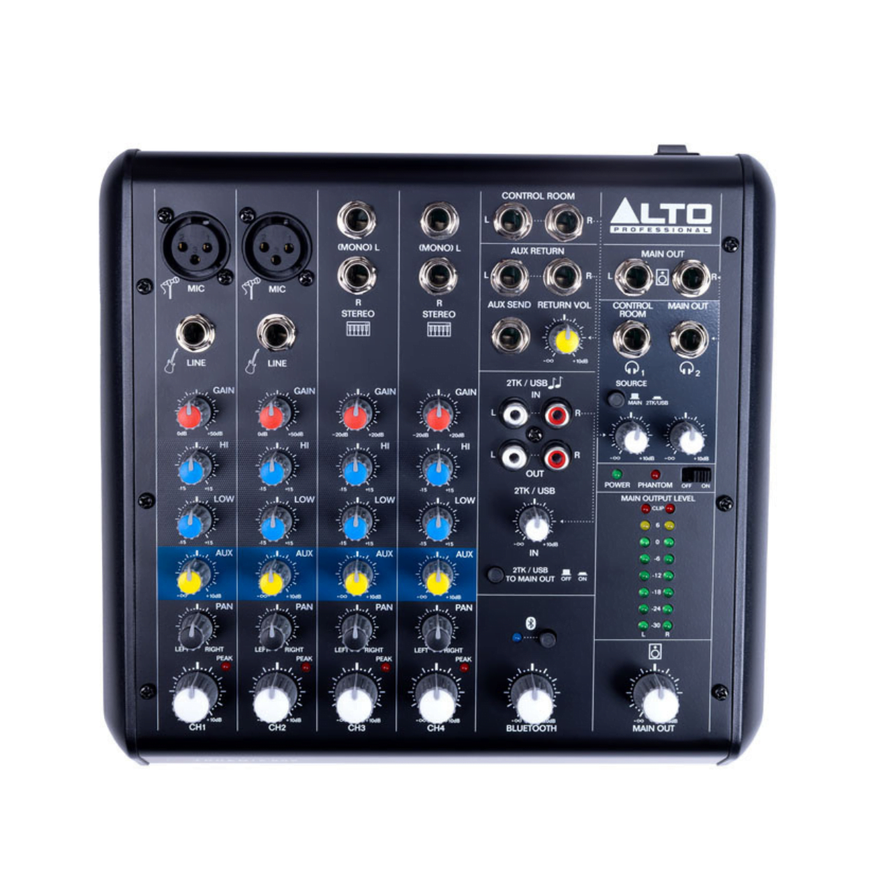 • Bluetooth, 1 Main Out)(4) Stereo pan control knobs (1 per input)