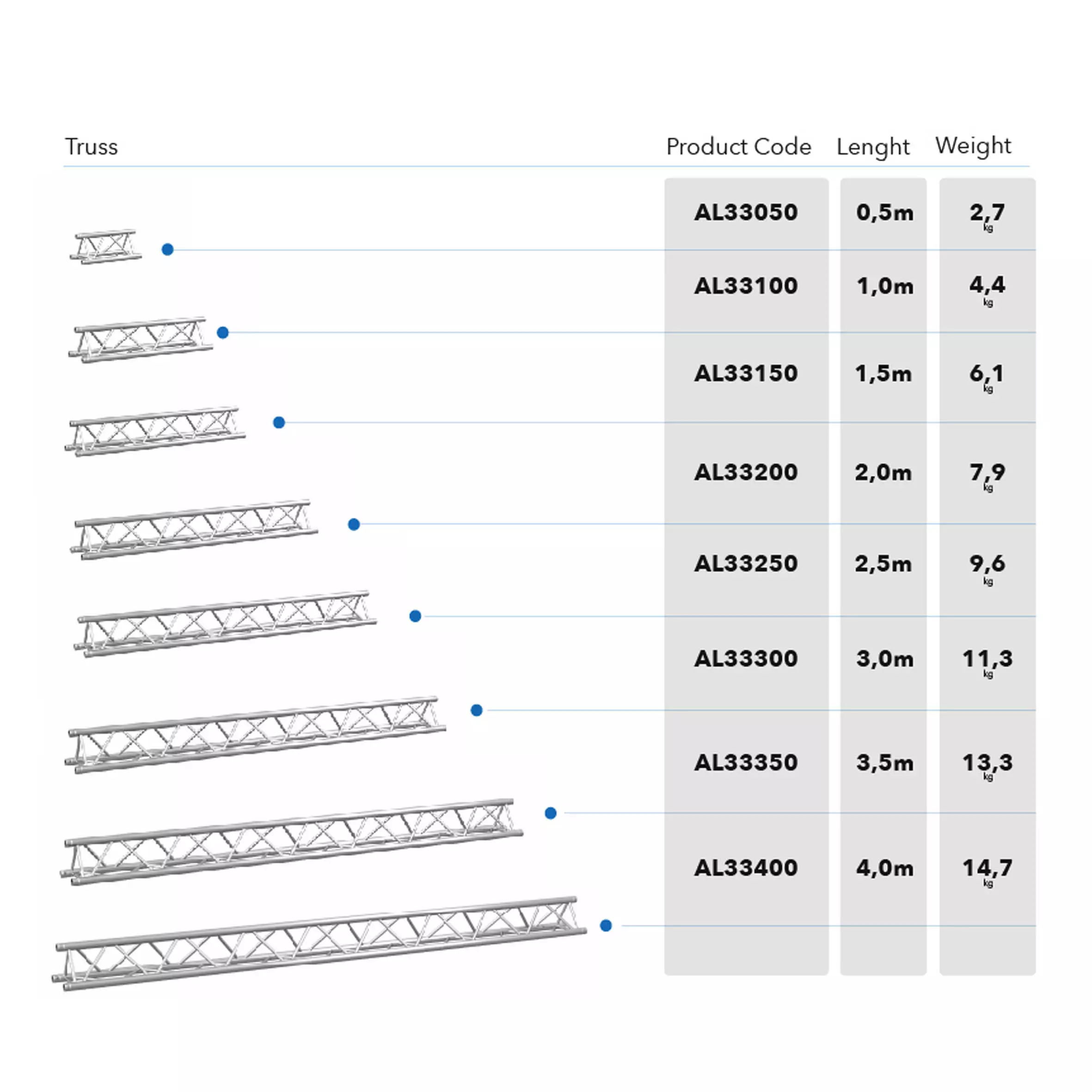 System 290 is made of main tube 50x2mm and braces 20x2mm. It has got SZ02.10 connection.Thanks to their spatial design, the aluminium trusses look attractive and are very strong. They can be arranged in different ways and are successfully used as elements of stage roofs, trade fair structures, exposition structures, big screen structures, LED display screen and projection screen support frames, lighting “gates” and sound “gates”, as well as frameworks of advertising banners or stage decorations. Each truss is of the highest quality which is confirmed by ISO DIN 4113 and TÜV certificate granted to our company. Each element is thoroughly inspected.