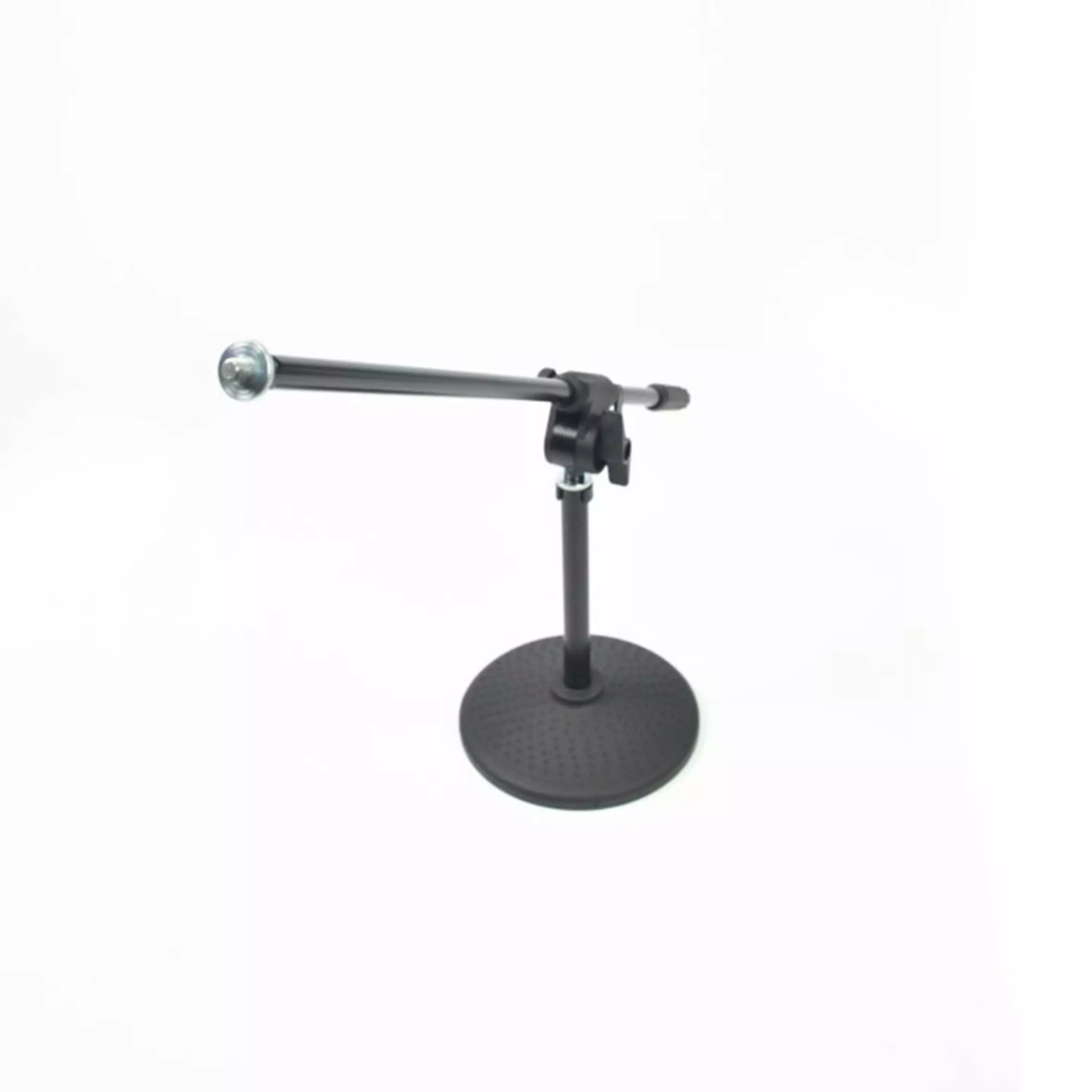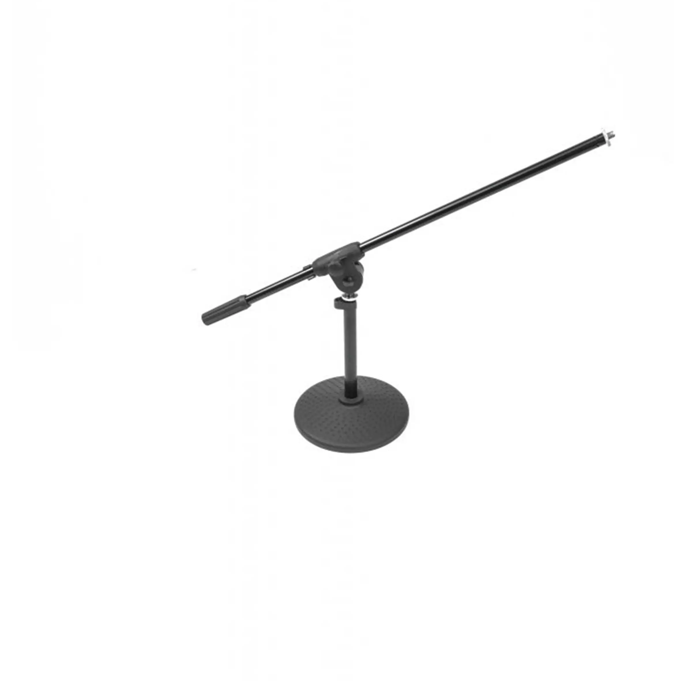 A very stable microphone stand mounted on a rubber-coated cast-iron disk, designed for both amplifying percussion instruments as well as conferences.