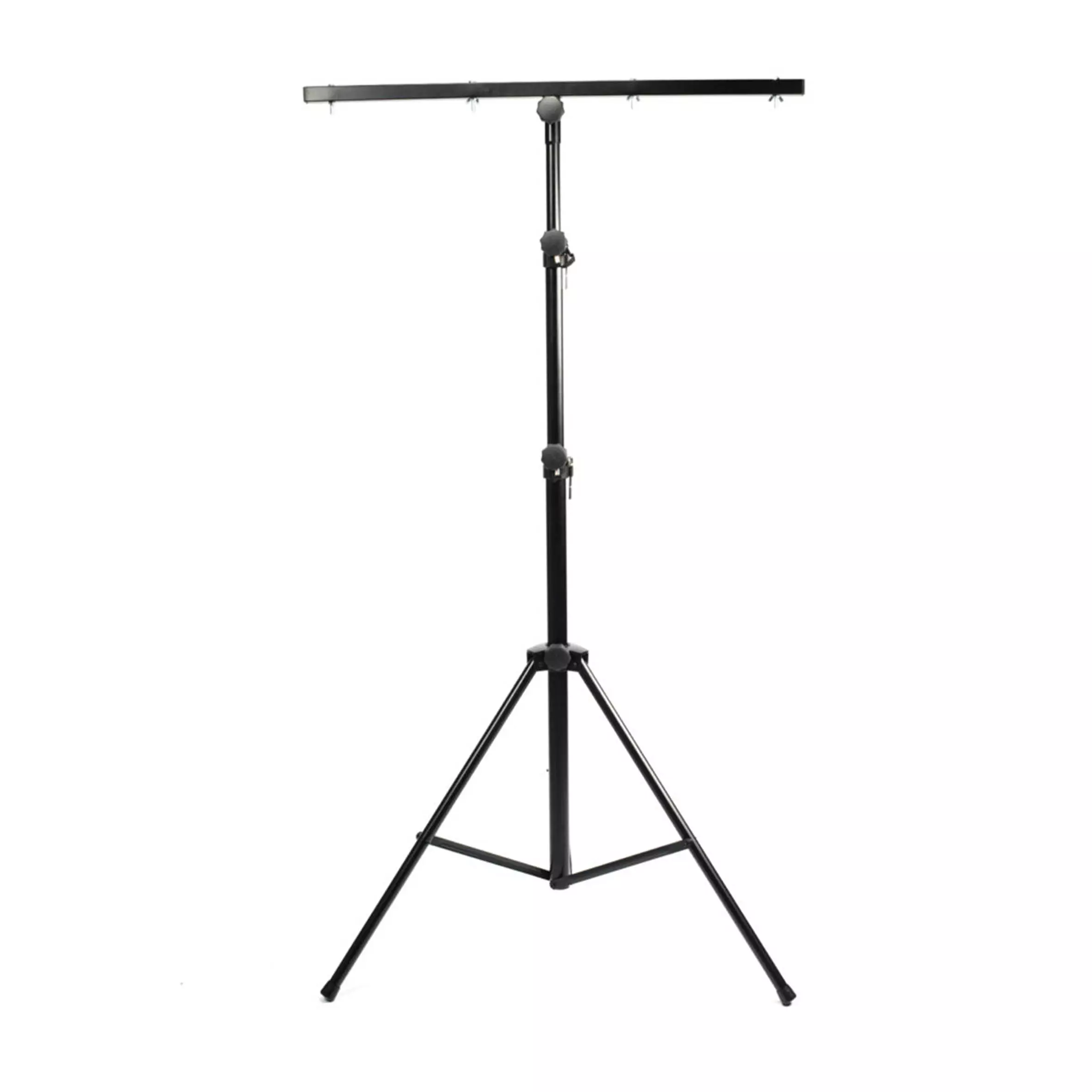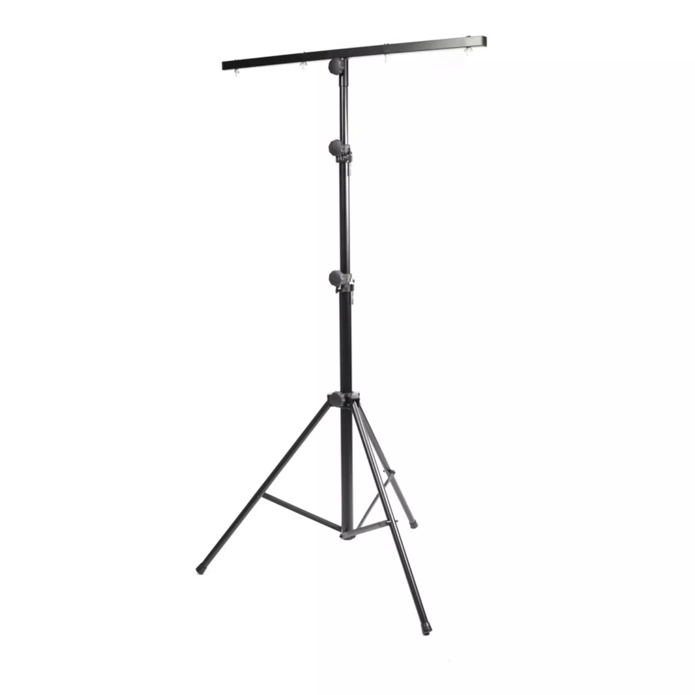 A high quality, all new T-bar mounting lighting stand with a magnesium joint and a single leg reinforcement ensuring stability and safety with a 1000mm lighting beam allowing to mount up to 4 lighting outlets with TV PIN.