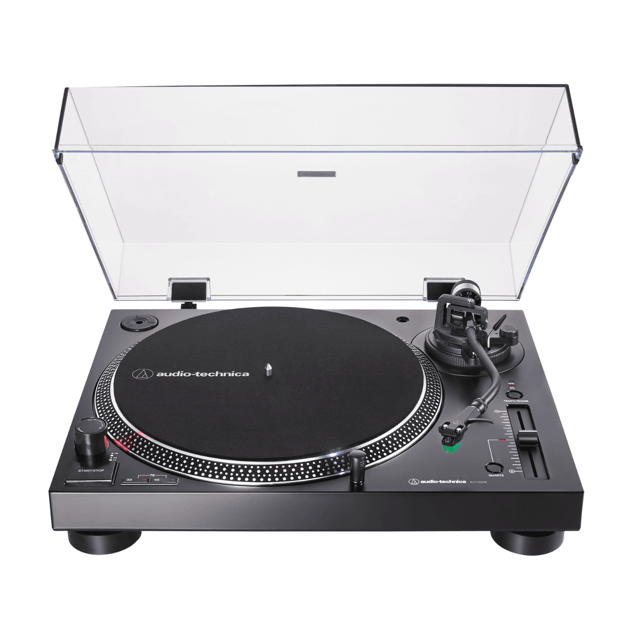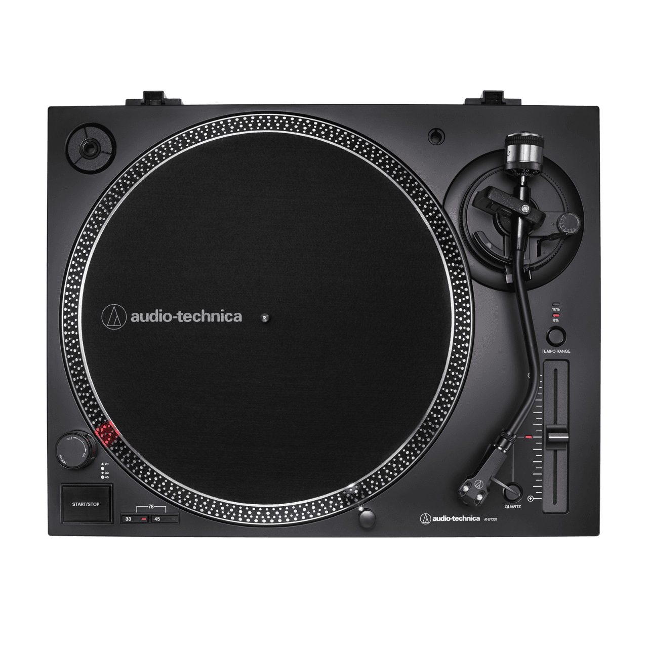 The turntable features an S-shaped tonearm with adjustable tracking force and an AT-HS6 universal ½”-mount headshell with an AT-VM95E Dual Magnet™ phono cartridge. Audio-Technica has been a leader in phono cartridge design for more than 50 years, and that expertise shows in the versatile, high-performance AT-VM95E cartridge, which comes with a 0.3 x 0.7 mil elliptical stylus, but is also compatible with any VM95 Series replacement stylus, offering a wide choice of options for every budget and application.