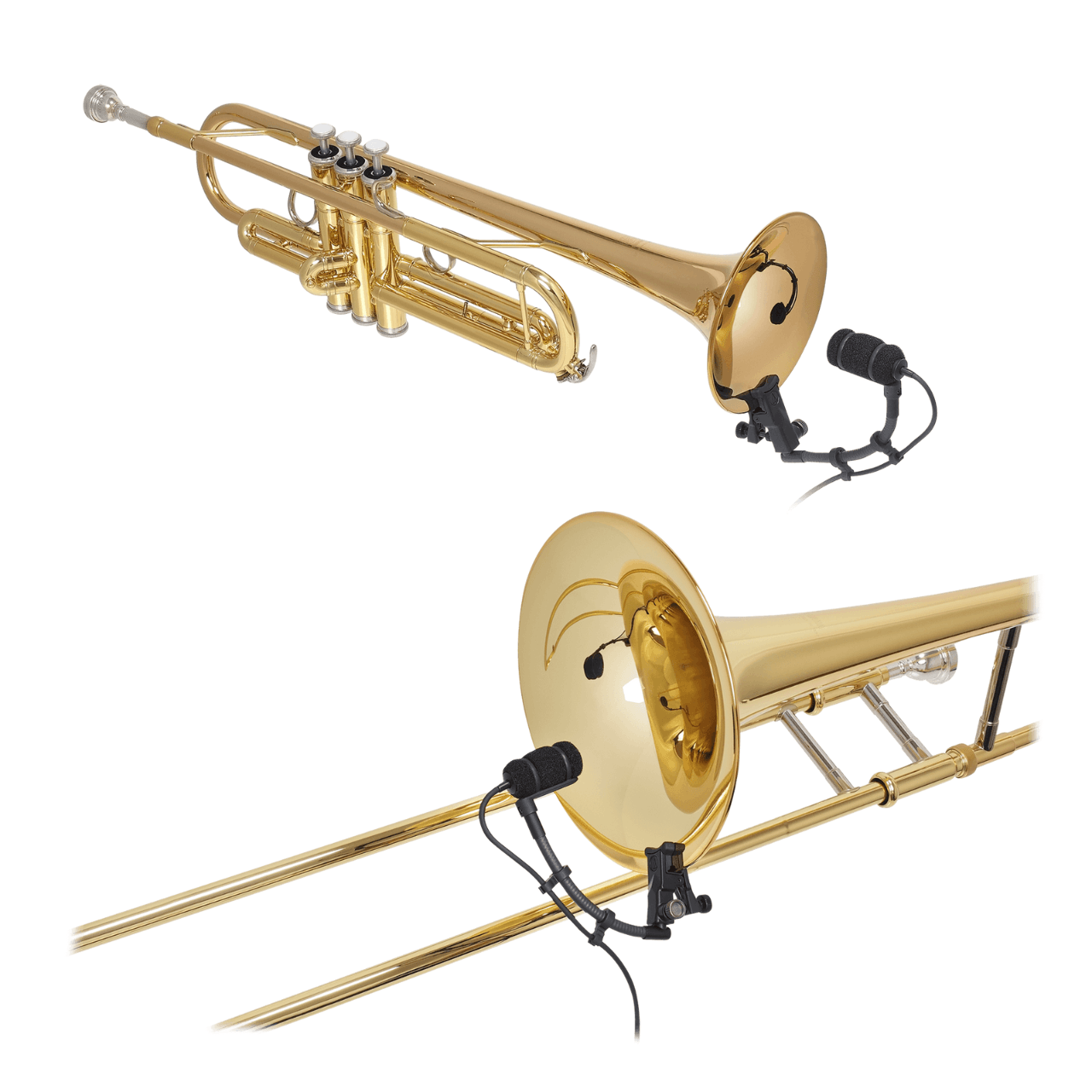- UniMount® universal clip-on mount attaches securely to the instrument bell and provides excellent shock resistance for the microphone