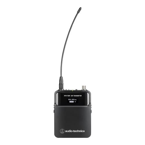 This system configuration features an ATW-R3210 receiver along with an ATW-T3201 body-pack transmitter. The ATW-T3201 is equipped with Audio-Technica’s new cH-style screw-down 4-pin connector for secure connection to Audio-Technica’s cH-style lavalier and headworn microphones, or cables. The transmitter features rugged, metal housings and is powered by two AA batteries. Charging terminals on the transmitter work with the ATW-CHG3 and networkable ATW-CHG3N smart charging docks (sold separately) to recharge NiMH batteries. Antenna power is available for powered antennas and other in-line RF devices. A ground-lift switch helps eliminate audible hum caused by ground loops. The system features balanced and unbalanced audio output jacks.