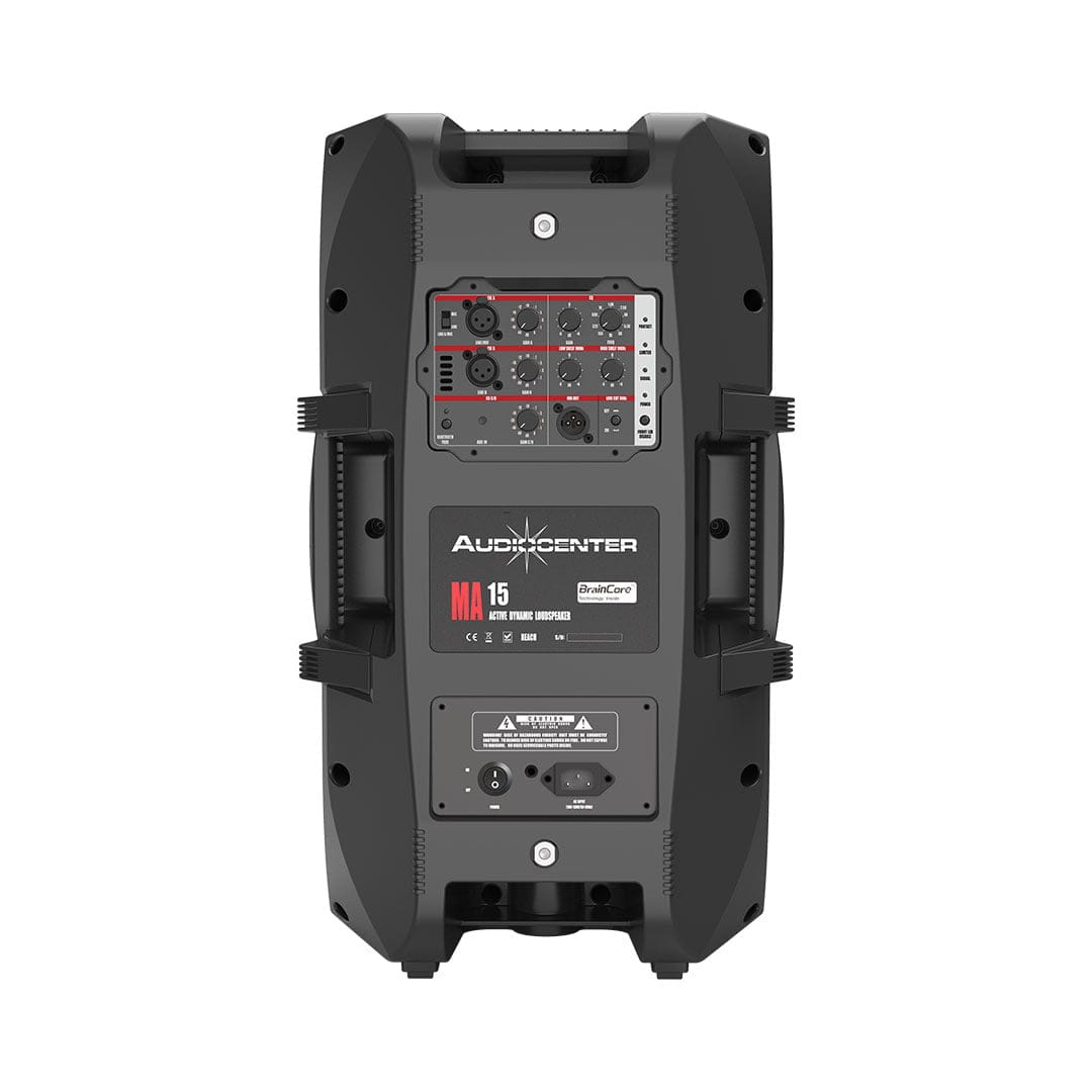 The Audiocenter MA15 is a powered plastic moulded 15″ speaker with stereo Bluetooth functionality,45-degree wedge for monitoring, pole mount and flying points for fixed rigging. It can be widely used in fixed installation and touring performance.