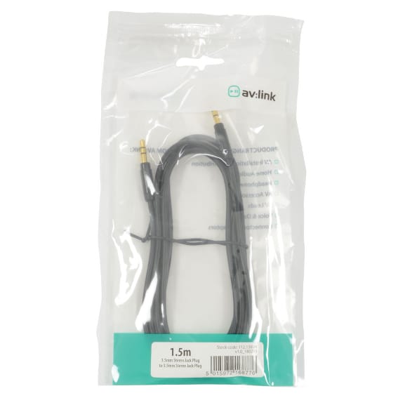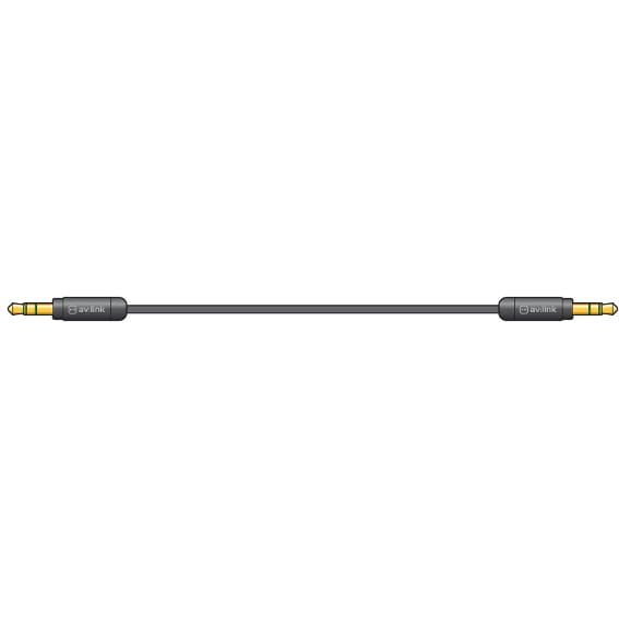 3.5mm stereo plug to plug lead suitable for audio signal connection, with slimline metal body suitable for connecting mobile devices, personal audio players and aux inputs.