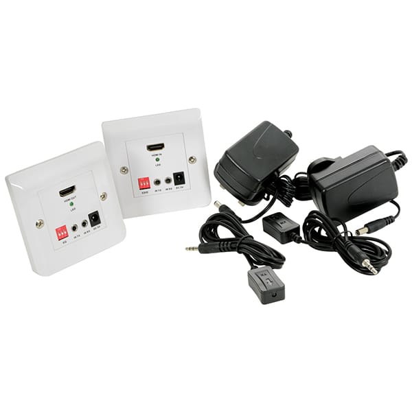 This extender kit with EDID works by sending HDMI and IR signals via a single shielded network cable from the input wallplate to the output wallplate without signal loss for a distance of up to 50m. Also included in the kit are 2 UK power supplies and IR transmission and receiver cables.