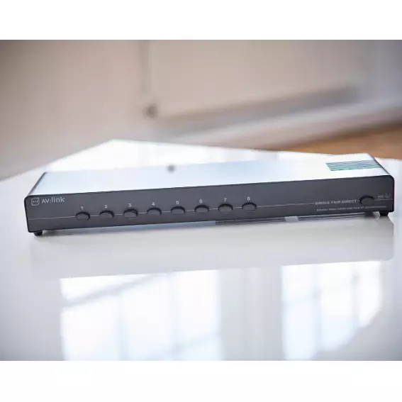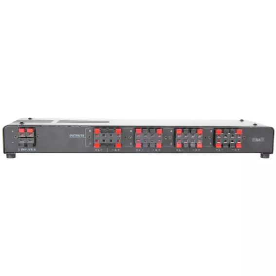 - Enables eight pairs of speakers to be connected to a single stereo amplifier