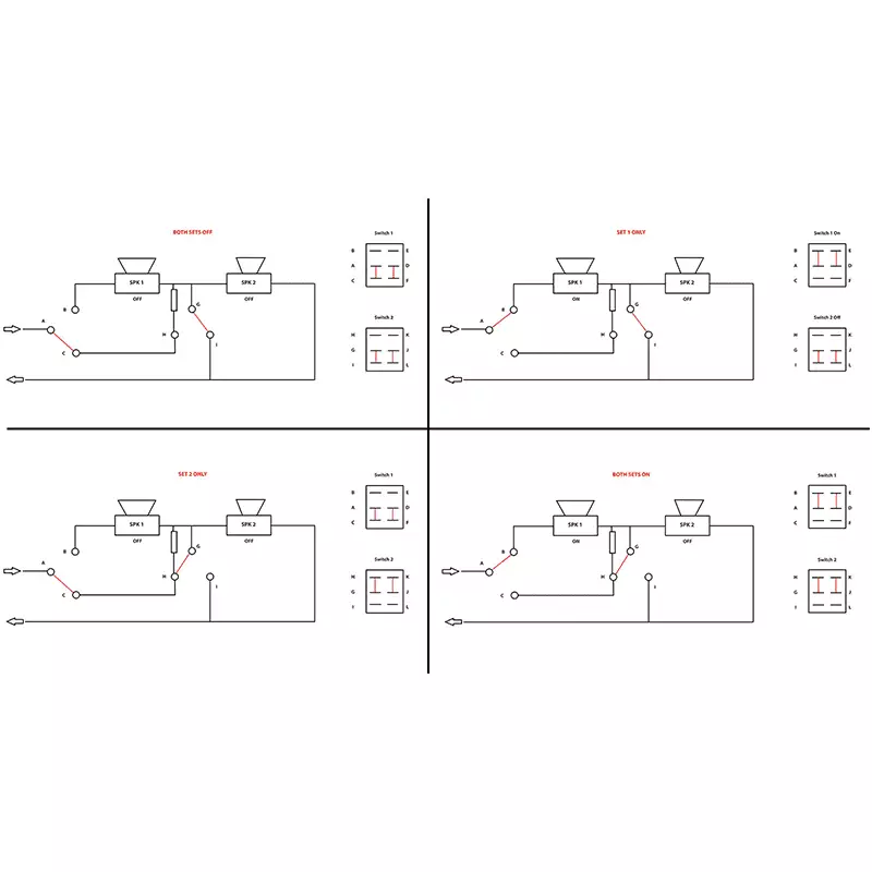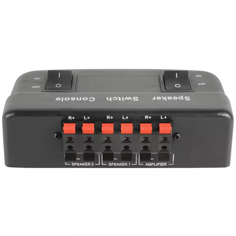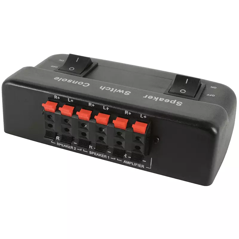 This compact switch allows for two pairs of speakers to be connected to an amplifier, with the ability to select either pair or both together. This can be a quick solution for the zoning of a sound system or for adding extra speakers to a single amp.