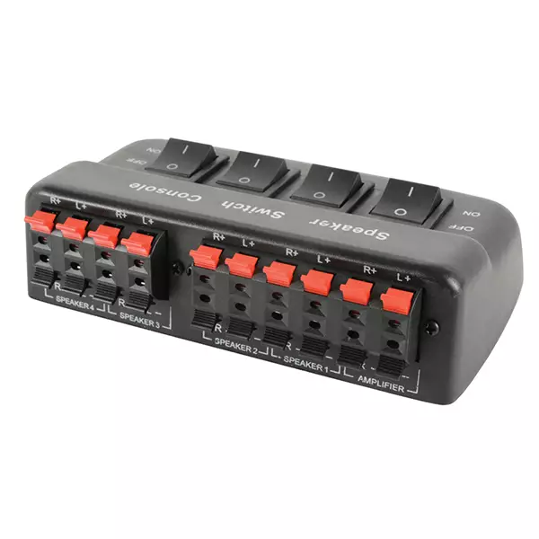 This range of compact switch allows for two or four pairs of speakers to be connected from one amplifier, giving the ability to select any pair individually or all together. This can be a quick solution for the zoning of a sound system or for adding extra speakers to a single amp.