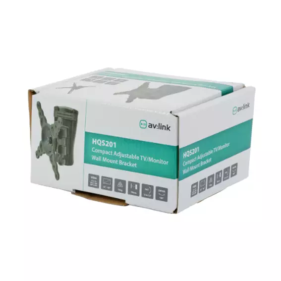 A compact, adjustable steel wall bracket suitable for mounting screens from 13″ up to 40″.