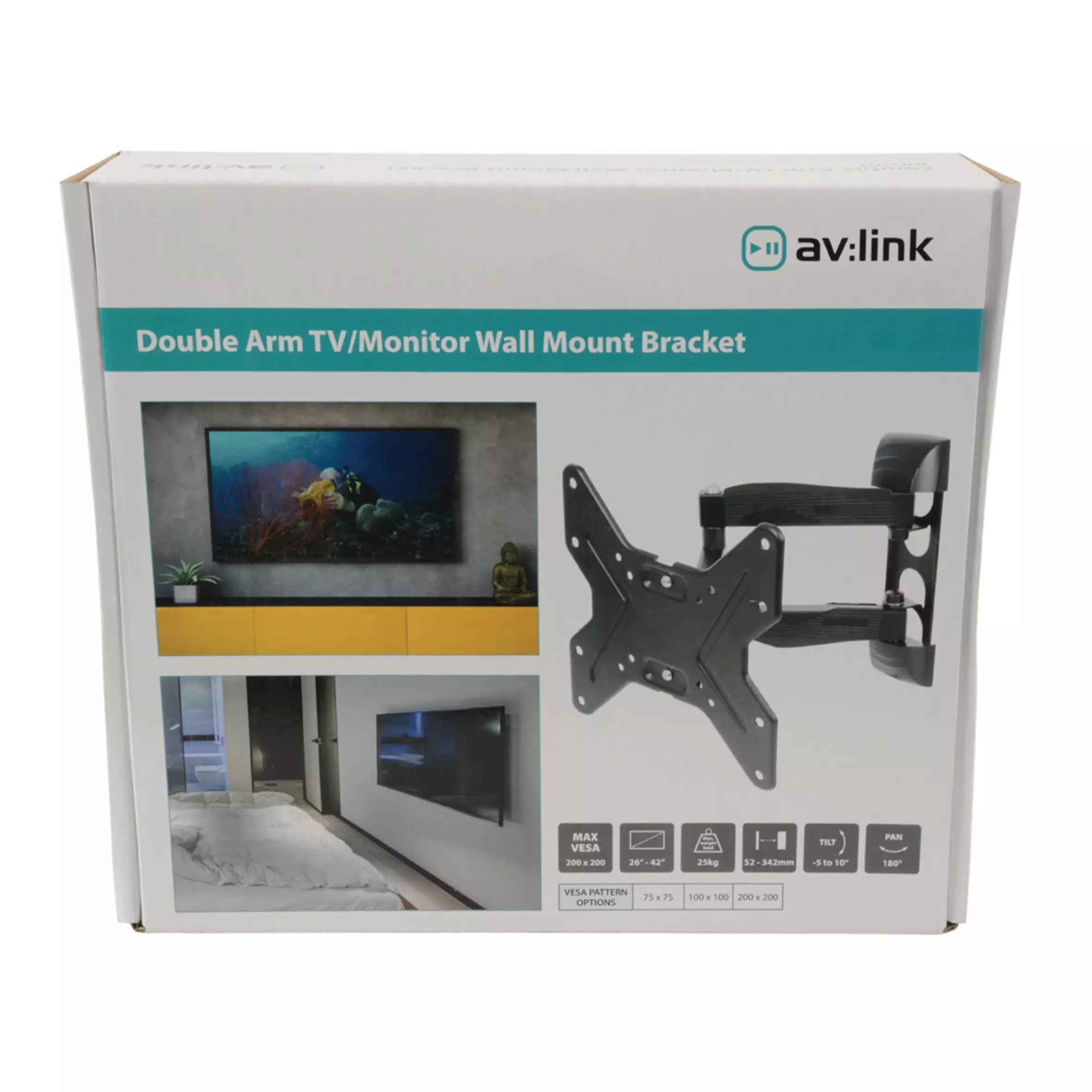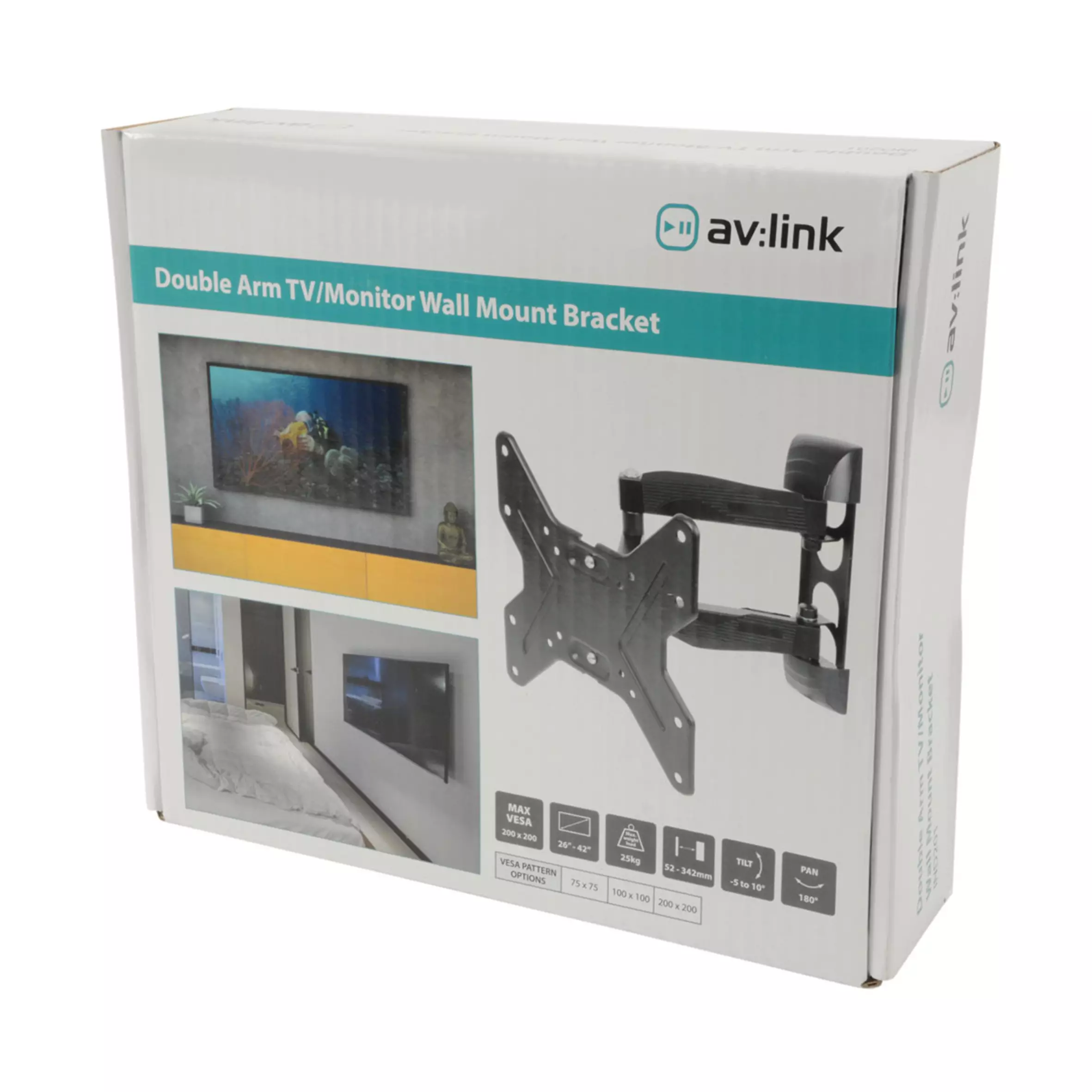 An adjustable rolled steel wall bracket suitable for mounting VESA compatible screens from 26″ to 42″ and up to 25kg in weight.