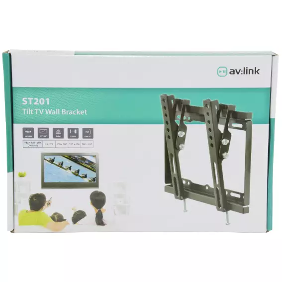 Easy to install, low profile tilt wall bracket to mount and support a TV screen.