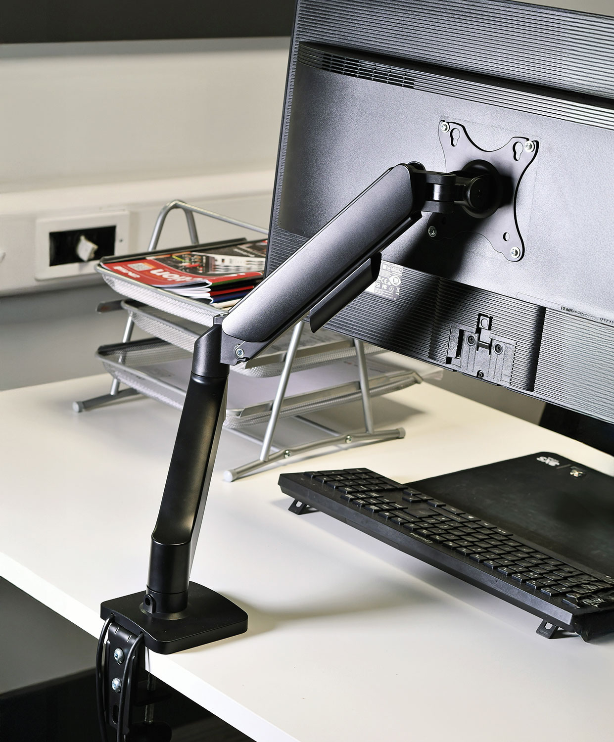 Full motion desktop mounts that easily hold TV’s and computer monitors from 17″ up to 32″ in screen size. Versatile gas sprung arms allow maximum flexibility to extend, tilt and swivel; providing easy positioning and viewing. An integrated USB Type-A and Type-C hub provides convenient sync and charge capability and the supplied fixings offer the flexibility of either desk clamping or grommet mounting options.