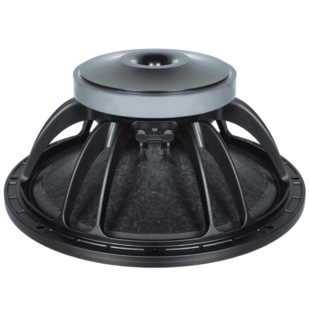 A double silicone spider ensures reliable suspension behavior across high excursion ranges, while maintaining linearity and controlling distortion. The overall assembly is designed for long life in portable, touring, or permanent sound systems.