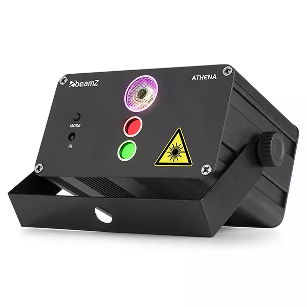 The Athena Gobo laser light with battery is just waiting for you to fire it up to have a party! With a portable laser light show it’s almost impossible to not have a great time! Double this up with a smoke machine and you’ve got a club in your yard or garage. No more hassle with cords and cables. You can take this LED Laser Light with you everywhere you go. Of course, the LED Laser Light can also be used on the wall socket when the battery is empty. Includes a remote control so it can easily be mounted out of reach if needed. Red (100mW) and green (50mW) laser