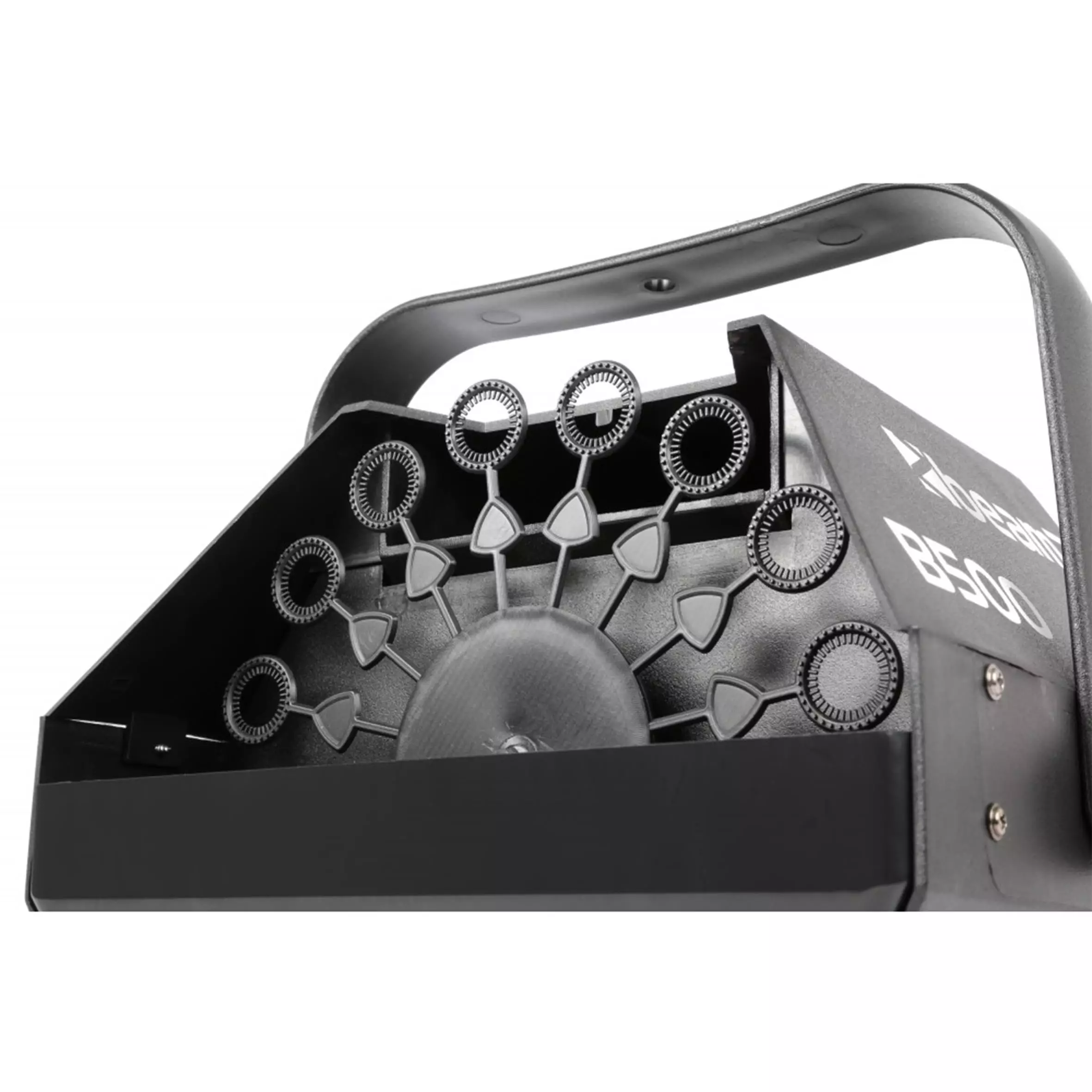 This small and attractive bubble machine creates a whirling effect thanks to the powerful blowerfan. The machine creates abundant bubbles per minute. It fits for family parties and small scale performances.