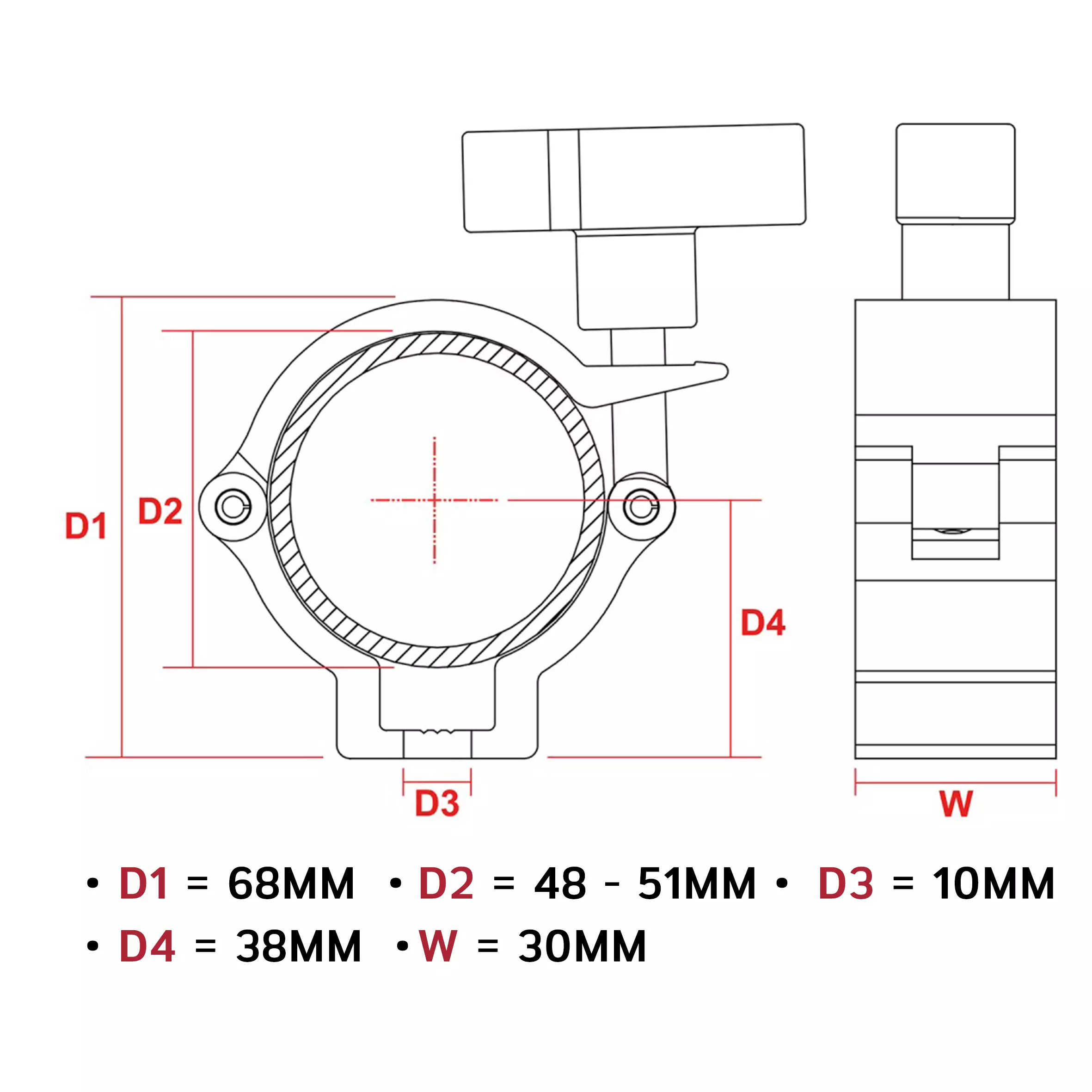 - Heavy duty aluminium clamp