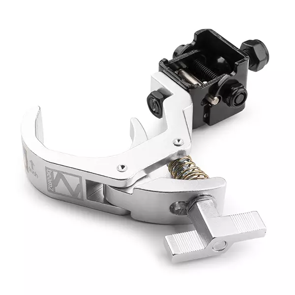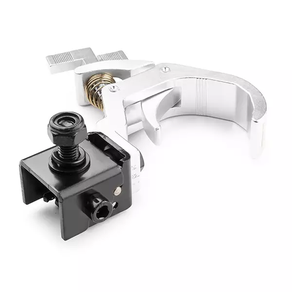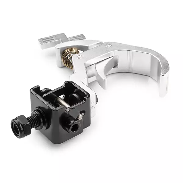 This tiltable Quick Release clamp is constructed from die casting aluminium and suitable for pipe and truss mounting fixtures. The wide clamp opening makes the clamp suitable for different sizes of truss and tubes. The unique tilting system ensures that the clamp can remain on the light effect and is therefore easy to transport in a flight case. Equipped with a safe and ergonomic handle.