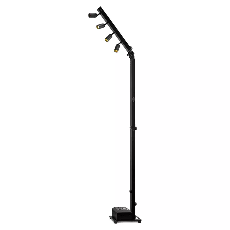 The BPL410 is a stylish designed, cable-free battery-powered light stand that redefines decorative lighting for banquets, presentation counters, gardens and various events. The simple mounting system with adjustable light emitters can be aimed in any direction for precise illumination. Thanks to the modular design, you can use the lamp as a standing lamp or as a hanging pin-spot bar with 4 spotlights. The light pole is equipped with a sturdy weighted base to ensure maximum stability, even when the stand is at its highest point. For added convenience, an optional flight case is also available, which can hold two full units for effortless transportation.