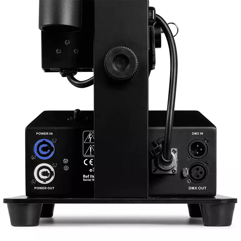 - DMX in/output via 3-pin XLR