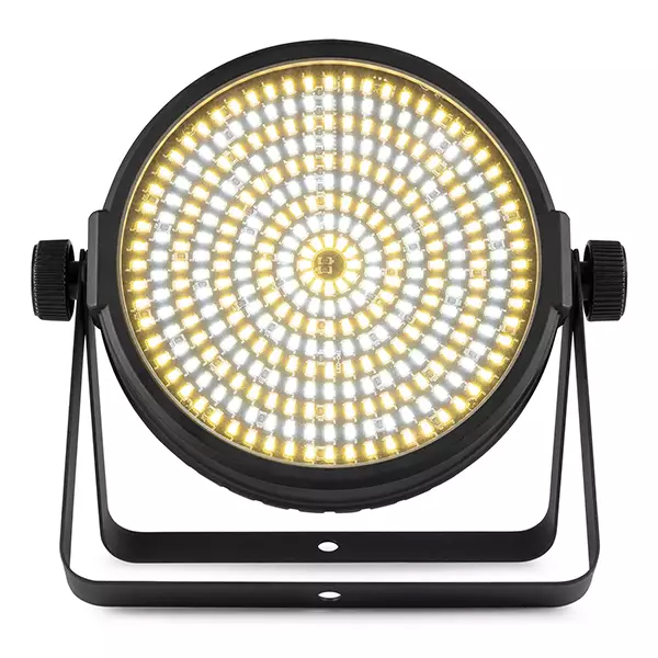 The BT430 is a slimline par producing a high intensity cool white or warm white strobe effect. These fixtures are equipped with a power-connector in/out for daisy chaining multiple units together. All BT4 models have pre-set programs that can be used in stand-alone mode and each ring of LEDs is individually controllable by DMX. The same can be done in stand-alone mode with the supplied remote control. The robust ABS housing and double stand also make the BT Par fixtures suitable for mobile use as they are lightweight and easy to setup. Ideal for DJs, bands and other venues wanting a great strobe effect.