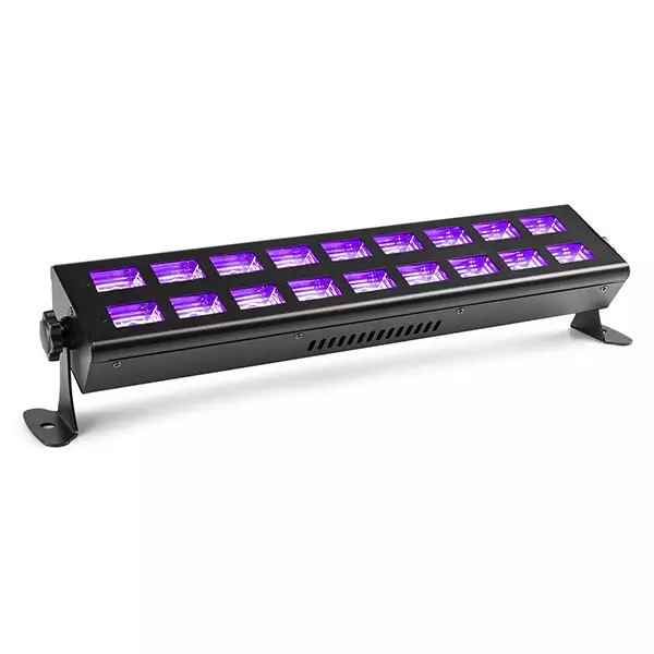 The BUV bars are powerful UV LED fixtures capable of covering wide area spaces. With its low profile design it lends itself to be installed almost in any way imaginable. Because the unit is powered by LEDs it in turn becomes a very lightweight unit that can be easily transported from gig to gig for those who are mobile DJs. The BUV series is powered by powerful 3W LEDs rated with very low power consumption. Ideal for washing stages, nightclubs, bowling centres, roller rinks and fun centres where ultraviolet effect is desired.