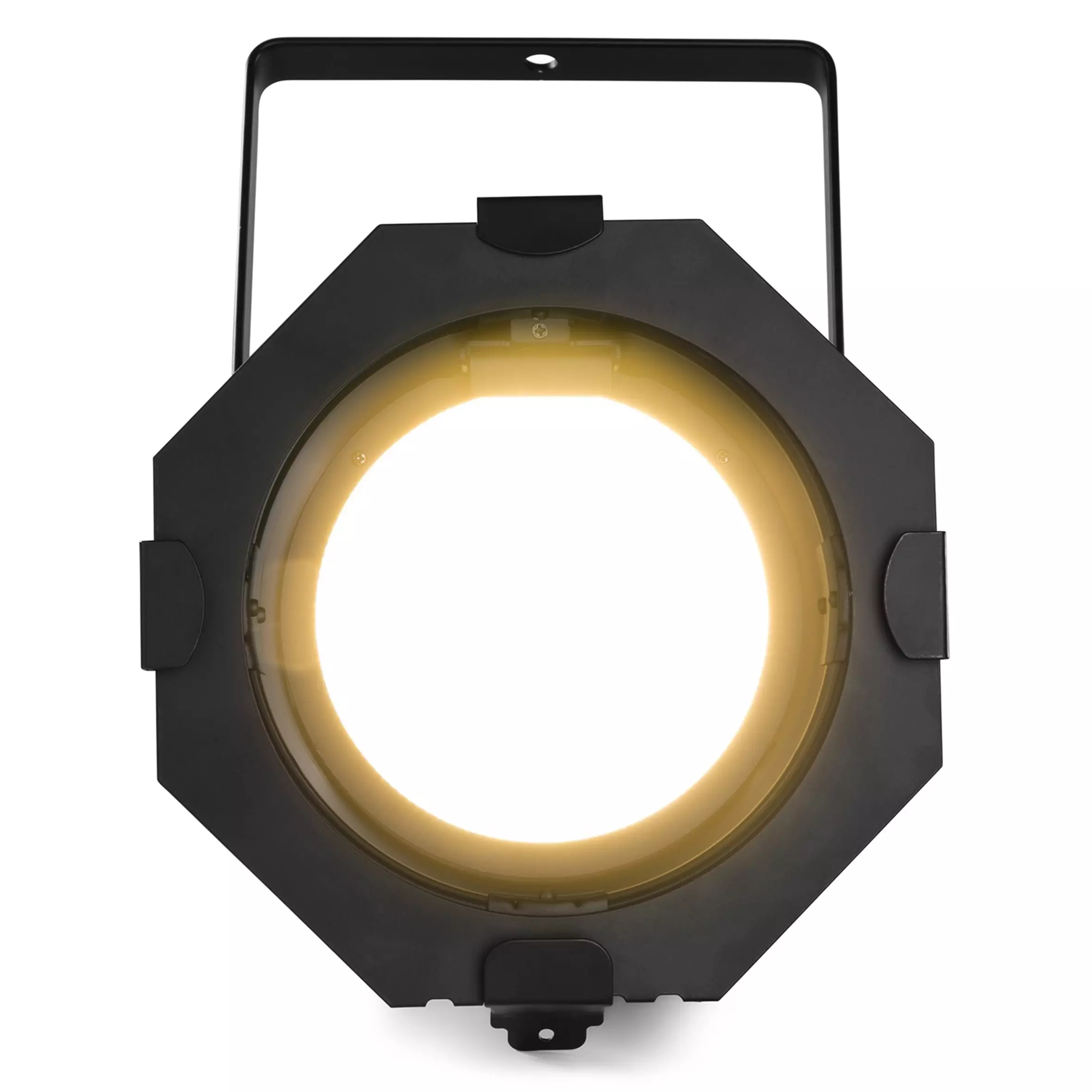 The COB100W is a bright LED PAR fixture provided with a powerful 100W warm white COB LED with a colour temperature of 3000K. The output is comparable to a traditional 1000W halogen beam Par. This PAR is equipped with 5 different beam angle options that may be changed by hand. Other features include electronic dimming (0- 100%), Strobe, control via 2 channels of DMX and Powerconnector in/out allows the fixture to be daisy chained. The fixture comes with a gel frame in which filters may be inserted.