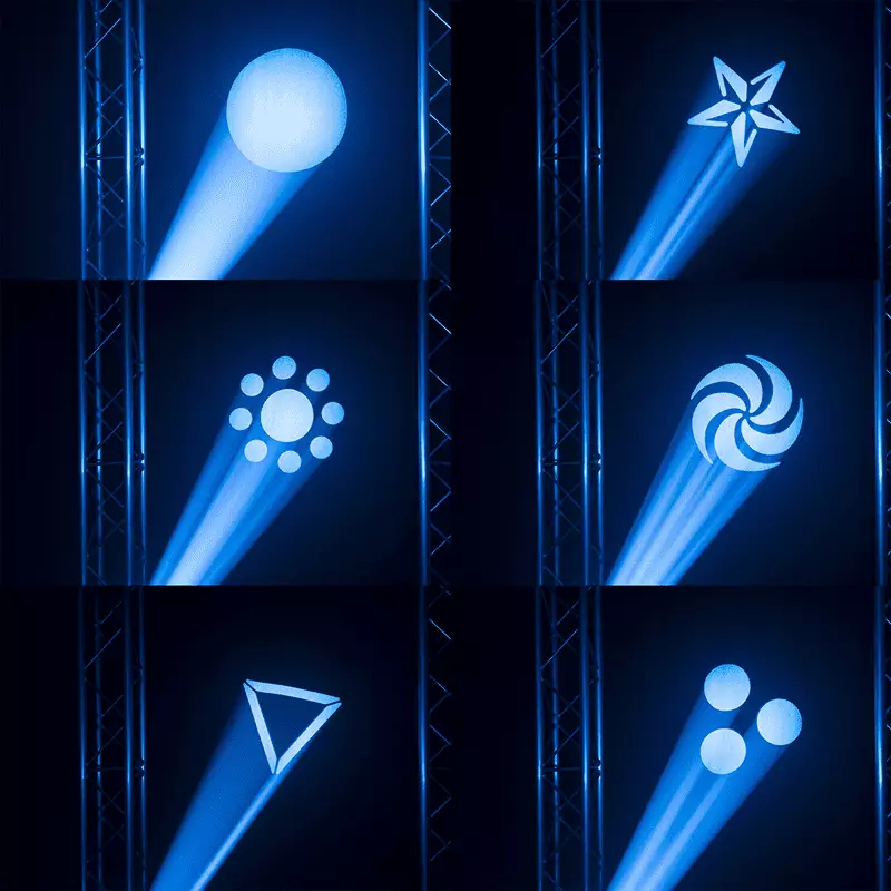- Rotating gobos: Quantity: 5 + open