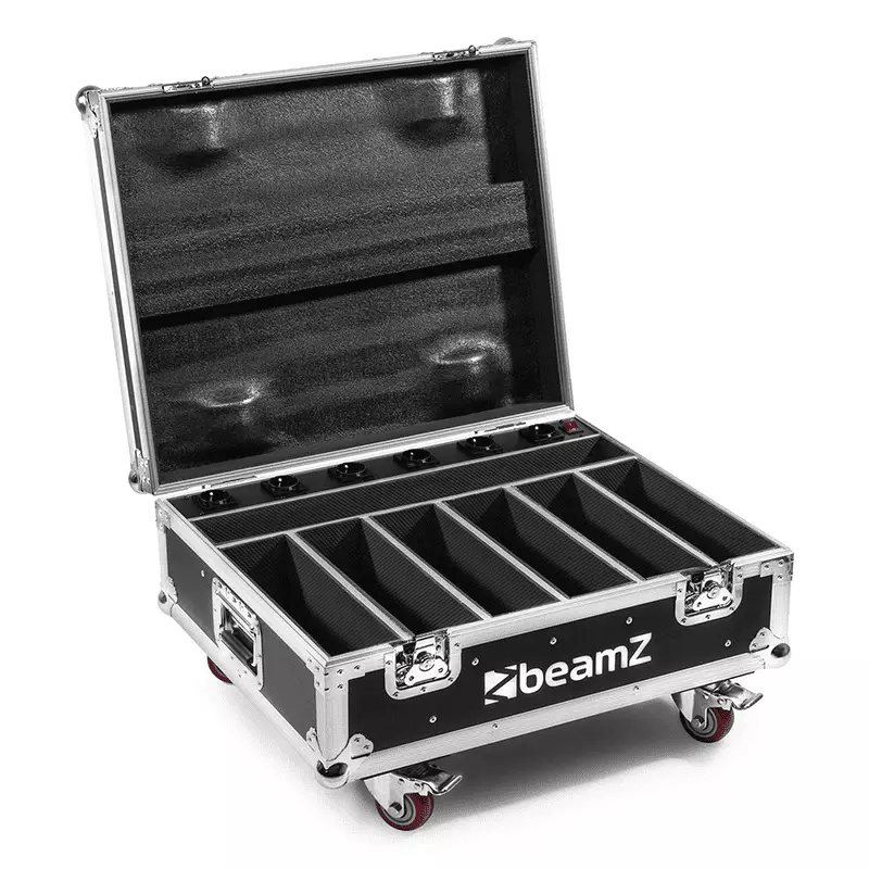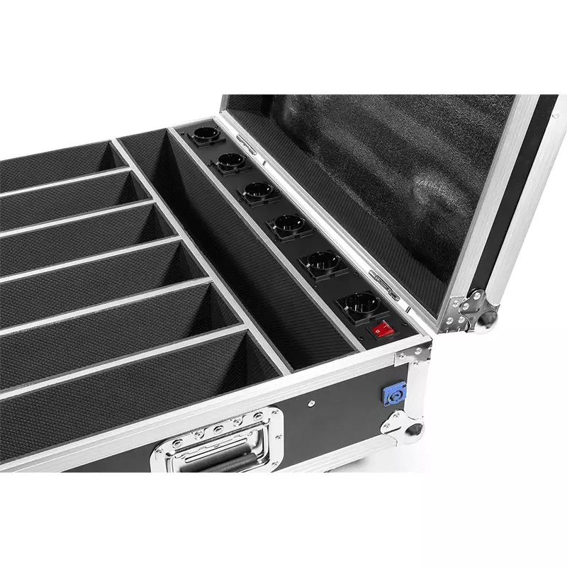 The BeamZ FCC12 Charging Flightcase is the perfect solution for safely transporting and charging BBP612 series wireless battery bar fixtures. This durable, rolling road case with easily handles is the perfect solution for mobile use. When the show is over, simply connect the fixtures to the internal charging module and use the external plug to connect directly into standard wall voltage. The next day, your fixtures are fully charged and ready to go again. Each case holds up to 6 fixtures with enough space for all power cables.