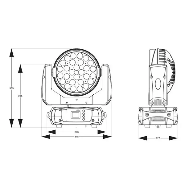 - DMX connector: 3-pin XLR