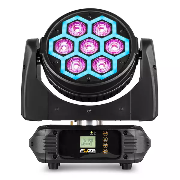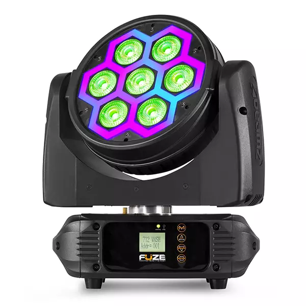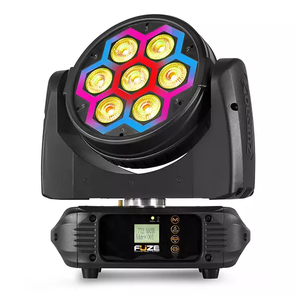 The Fuze series consists of a series of compact moving heads equipped with a powerful LED light source that guarantees impressive colour washes and stunning visual effects. Exact positioning is possible through 16-bit movement resolution (540-degree pan and 180-degree tilt). These fixtures are designed in a compact housing and are ideal for lighting designers, DJs, bands, clubs, bars and installations where small footprint and low weight is critical. It can be controlled by DMX, with sound activation or used in standalone mode with the Master/Slave function.