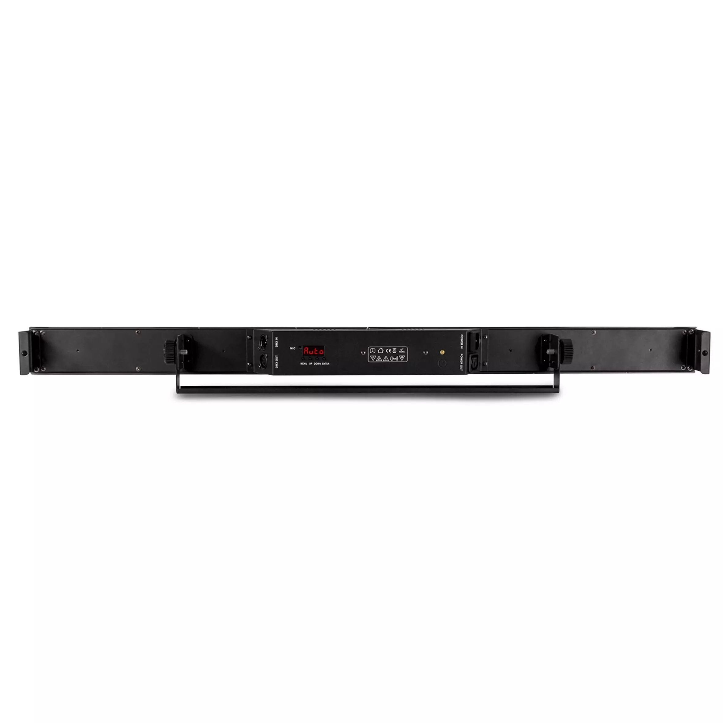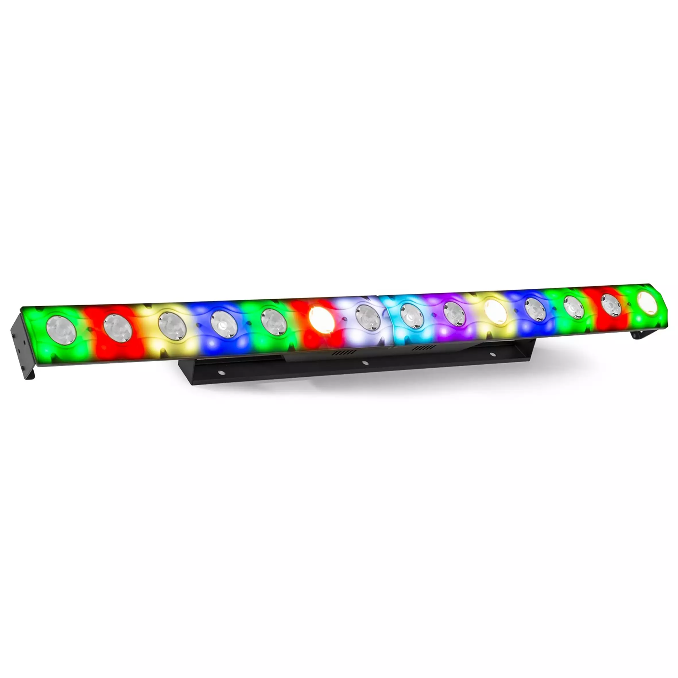 The LCB-14 is a hybrid LED bar equipped with 14x 3W Warm White LEDs and 56x SMD RGB LEDs for spectacular backlight effect. The LEDs can be programmed in single pixels for stunning chase effects. While using the fixture in stand-alone mode there are pre-programmed shows that you can run automatically or sound activated. It’s also possible to create your own mixture of colours in RGB mode (for background light). The extra power connector output enables you to simply link the power of multiple units together into a single socket.