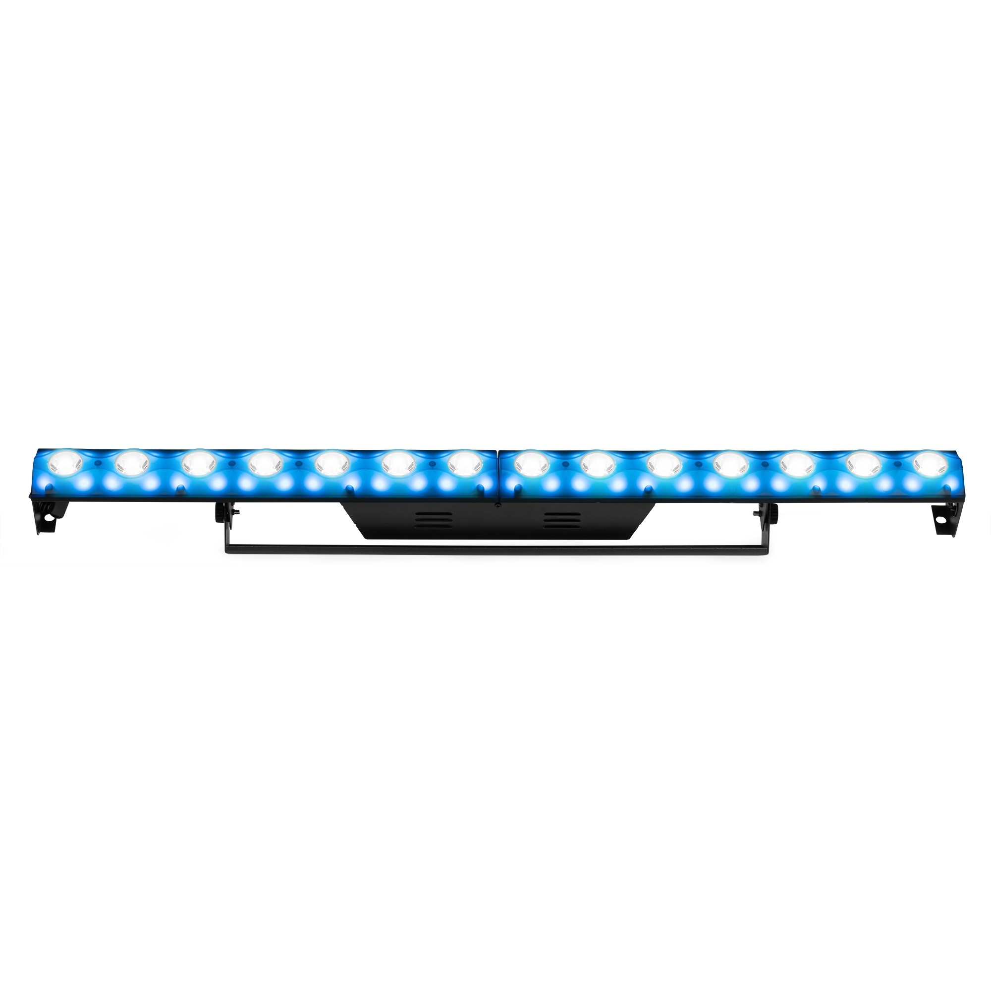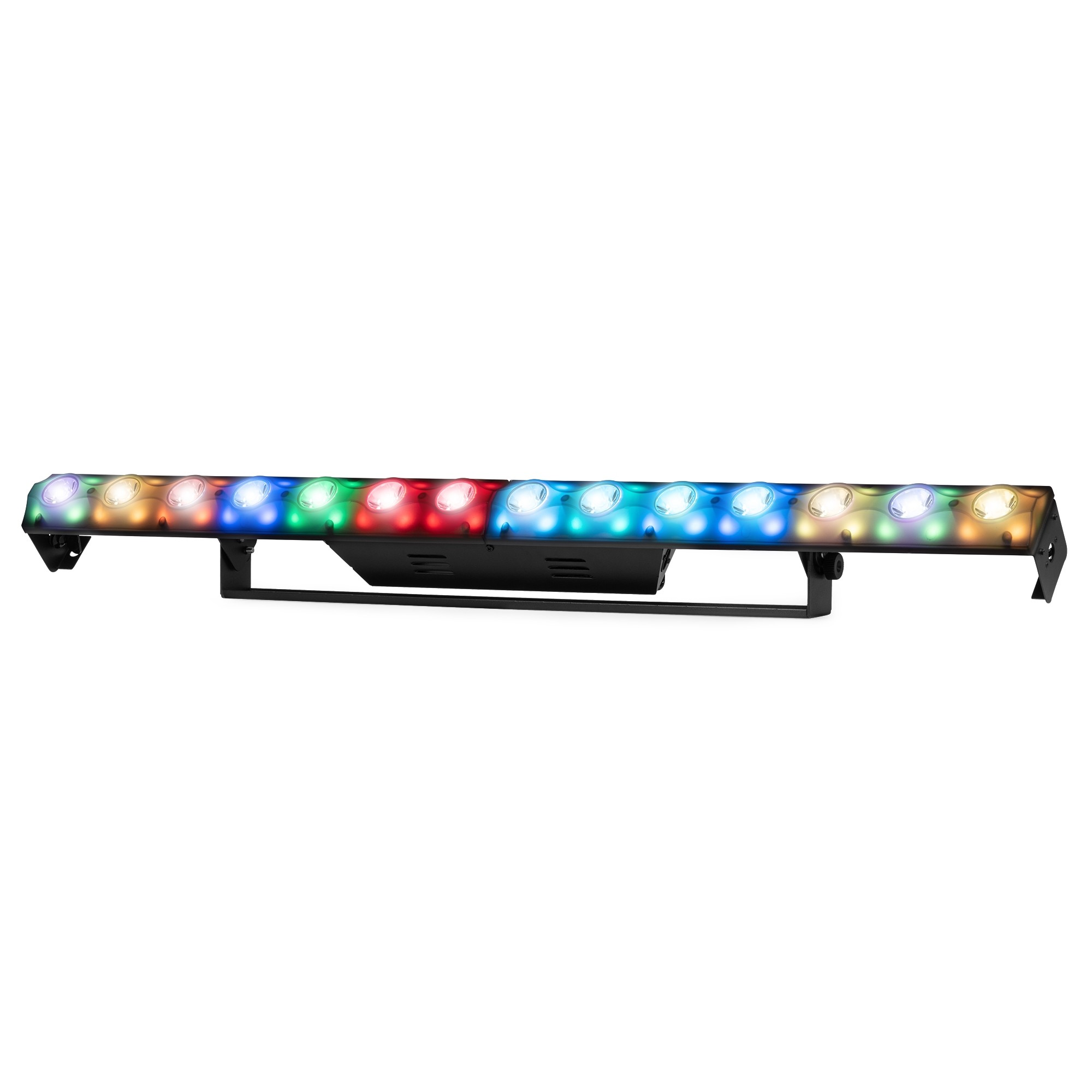The LCB14C is a hybrid LED bar equipped with 14x 4W RGBW LEDs and 56x SMD RGB LEDs for spectacular backlight effect. The LEDs can be programmed in single pixels for stunning chase effects. While using the fixture in stand-alone mode, there are pre-programmed shows that you can run automatically or sound activated. It’s also possible to create your own mixture of colours in RGB mode (for background light). The extra power connector output enables you to simply link the power of multiple units together into a single socket.