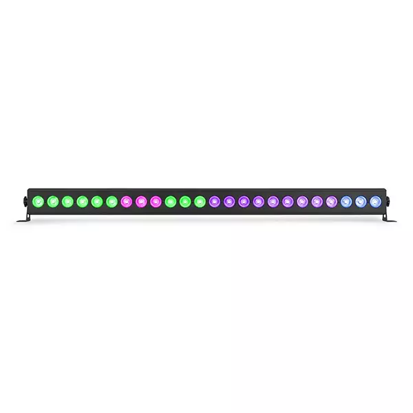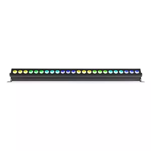 The LCB246 is a LED bar equipped with 24x 6W pieces RGBAW-UV LEDs. The LEDs are divided into 8 individually controllable sections of 3 LEDs each. While using the fixture in stand-alone mode there are pre-programmed shows that you can run automatically or sound activated, pick from the pre-set colour macros or create your own mixture of colours in RGBAW-UV mode. The extra power output enables you to simply link the power of multiple units together into a single socket.