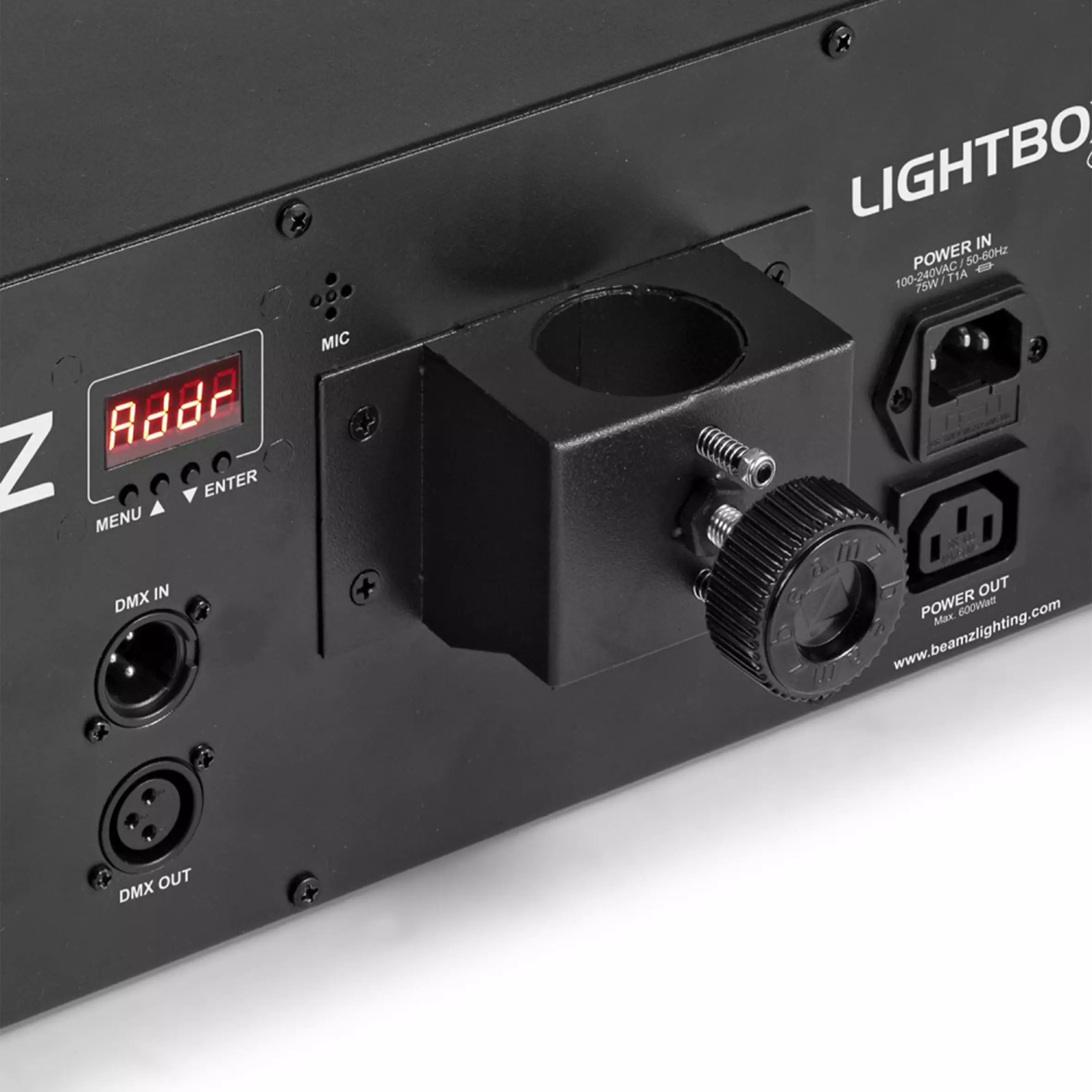 The Lightbox 3 is a 3-in-1 fixture equipped with a high power PAR, a Derby effect and a magnificent Visual Ring Effect. This Lightbox 3 effect offers small clubs and mobile entertainers the convenience of having multiple effects in one light show without having to transport multiple fixtures. Supplied with bracket and IR remote control.
