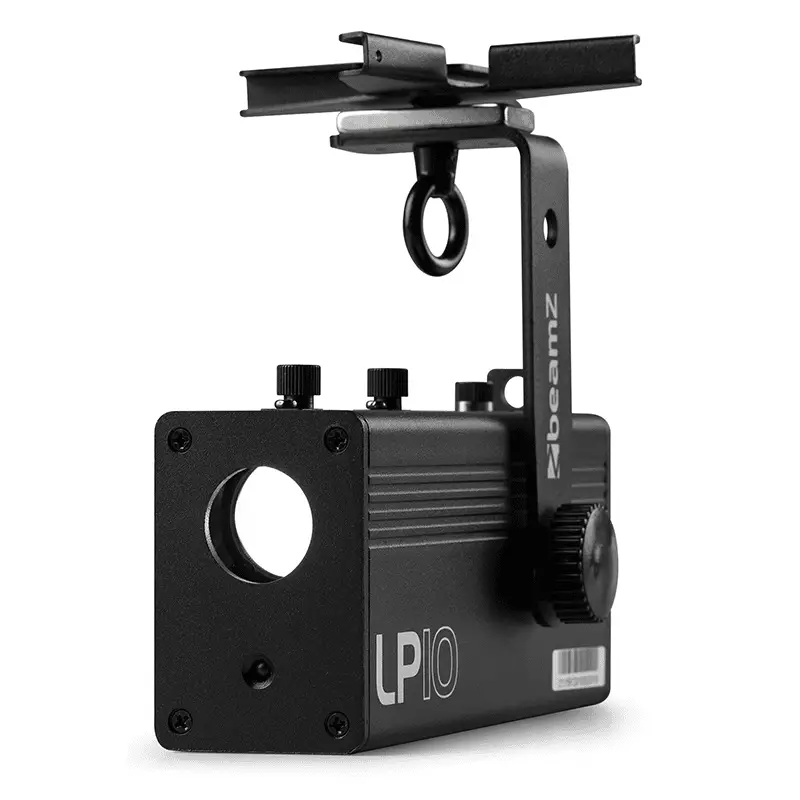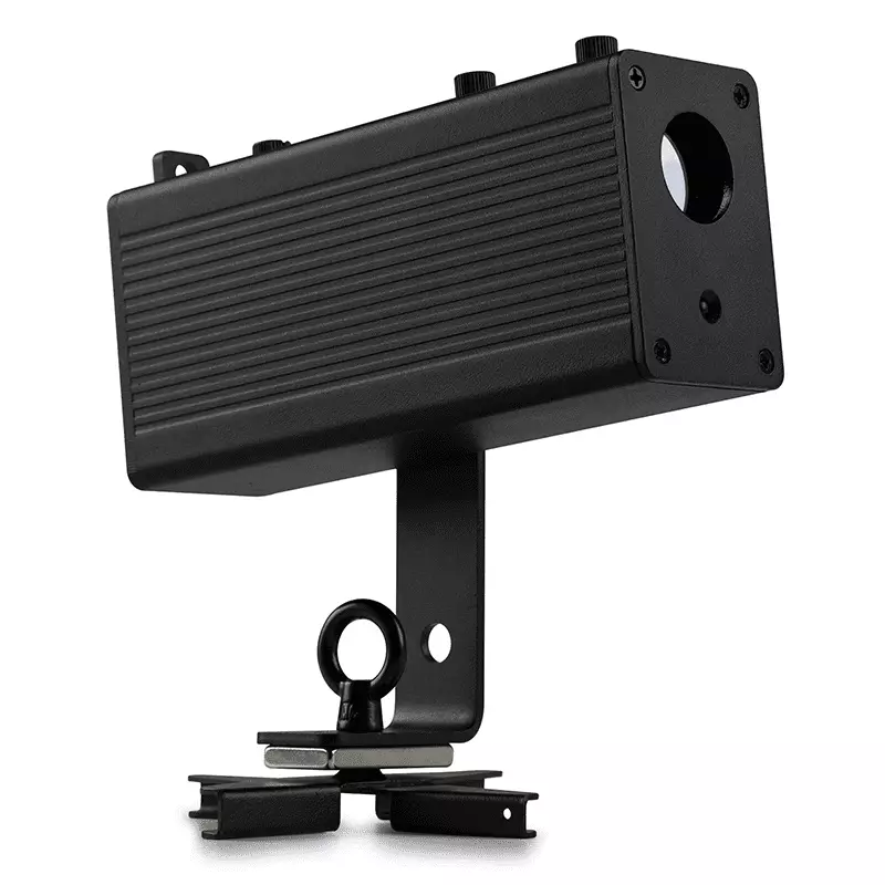 The LP10 is a battery powered LED logo projector. From trade shows to storefronts, this logo projector is perfect for a variety of environments. For example, for projecting band logos, event graphics and announcements on walls, ceilings, floors, etc. Say goodbye to power cables and limitations. The built-in rechargeable battery ensures hassle-free operation, so you can project your logo or one of the included logos anywhere you need it, without being limited by power outlets. Adjustable zoom and projection angle provide flexibility, enabling you to project your brand onto walls, floors, or even the ceiling and using the included wireless remote, you can control the dimming operations. The LP10 is equipped with a magnetic base that affixes to most metal surfaces and a scissor clip that attaches to drop ceiling supports for fast setup and cable management.