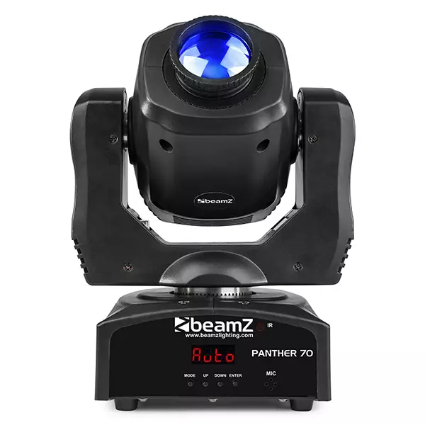 The Panther 70 is a powerful LED moving head with a 70W bright white LED source. Equipped with a colour and gobo wheel for ultimate control. The gobo wheel has 7 different gobos + open and the colour wheel has 7 colours + white. The Panther 70 moving head works in DMX, stand-alone mode or with IR control. When operating in DMX mode you can choose 2 different DMX channels modes.
