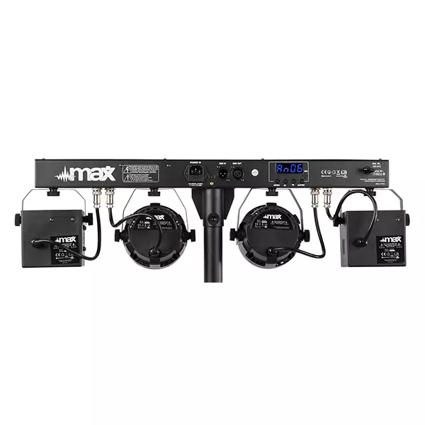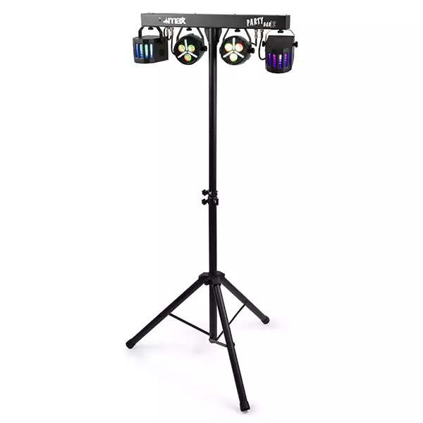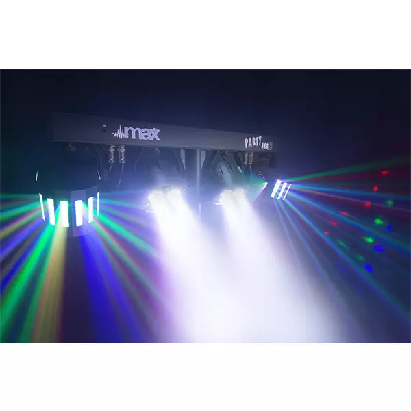 The MAX PartyBar Series consists of a number of complete kits fitted with spectacular LED light effects. All sets are provided with high-intensity LEDs in different colours. This series of Party Bars is plug and play and can be controlled via DMX, IR remote control or auto and sound-activated programs selectable from the control panel with LED display and push buttons. A tripod stand is included for quick and easy setup. Specially designed for stages, parties, entertainers and all other special events.