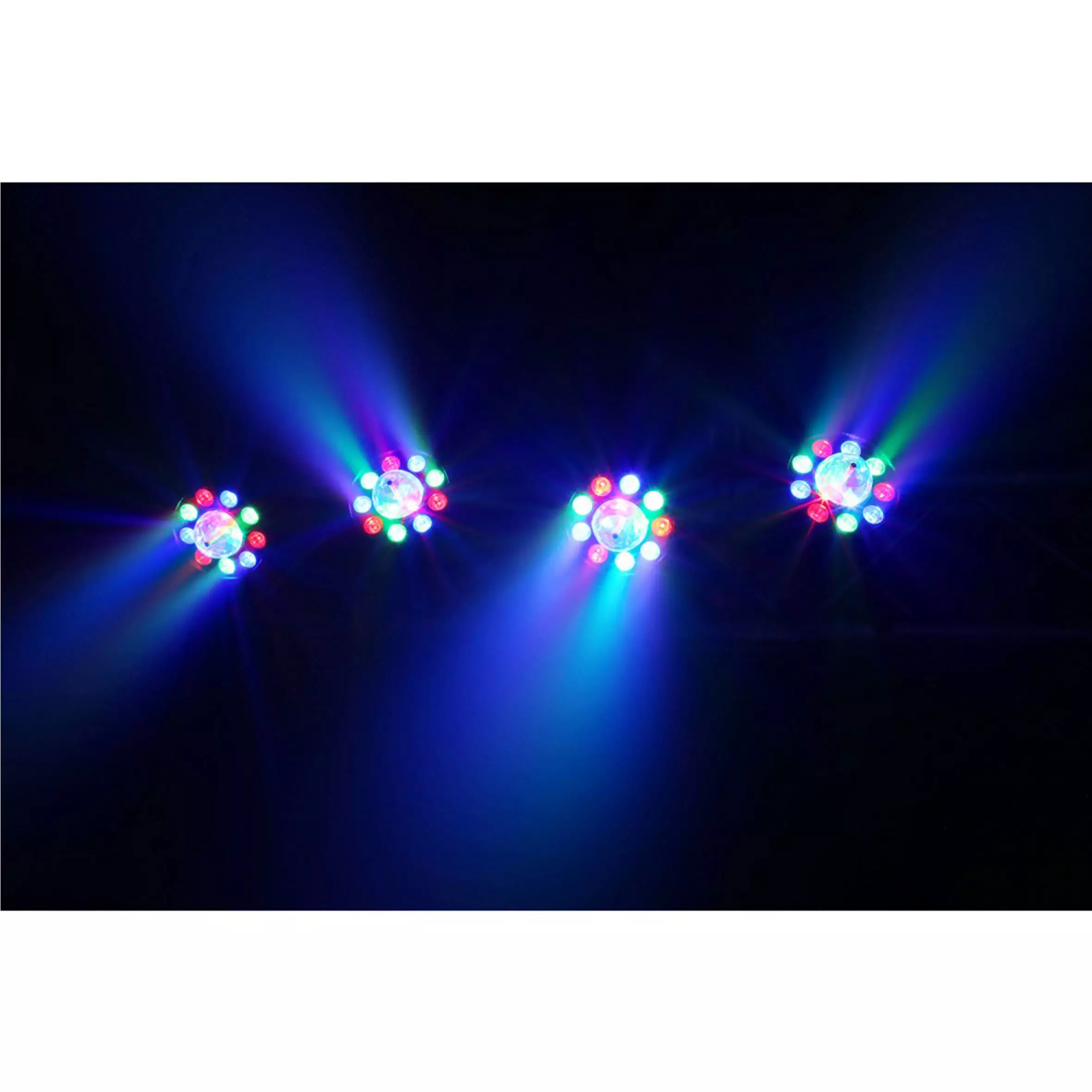 - 4 PAR cans with 3x 1W Red, 3x 1W Green and 3x 1W Blue LEDs