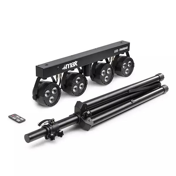 A kit of 4 LedPARs on a T-bar with the possibility to mix RGB with Cool White to achieve extraordinarily beautiful solid colours. Because of the 4-in-1 technology and very high power of the individual LEDs we can achieve a very high output with a minimum quantity of LEDs. The lenses on the front mix all colours perfectly without creating shades in the output. The T-bar have been carried out in a compact casing that can fit almost anywhere. The system includes a remote control that simplifies operation and eliminates the bother of programming. Or you can choose to control with an external DMX controller via its XLR In/Outs. The rugged housing is specially designed for stages, disco, night clubs etc.