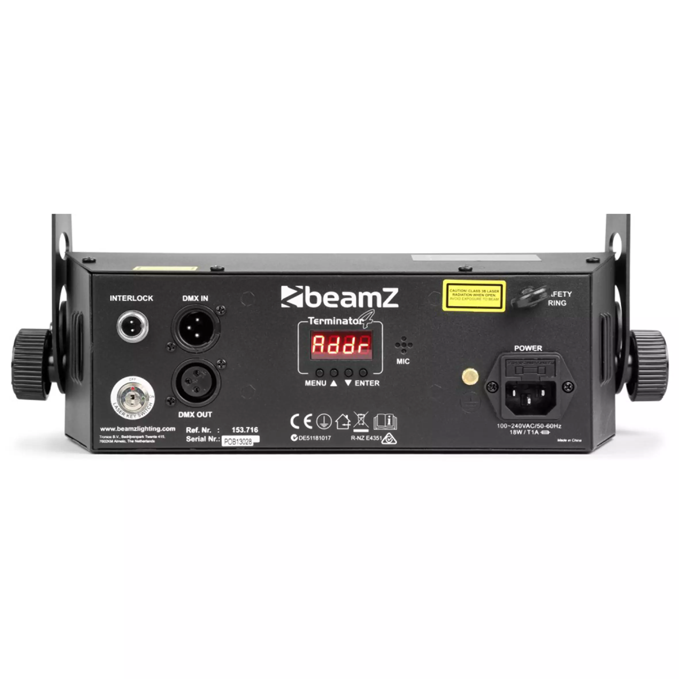 The Terminator IV combines the power of 3 great effects into a single fixture. The double moonflower creates colourful effects that, combined with the laser, light up any dance floor. Finished off with a strong white stroboscope to create extra energy in the room. This effect offers small clubs and mobile entertainers the convenience of having multiple effects in one light show without having to transport multiple fixtures.